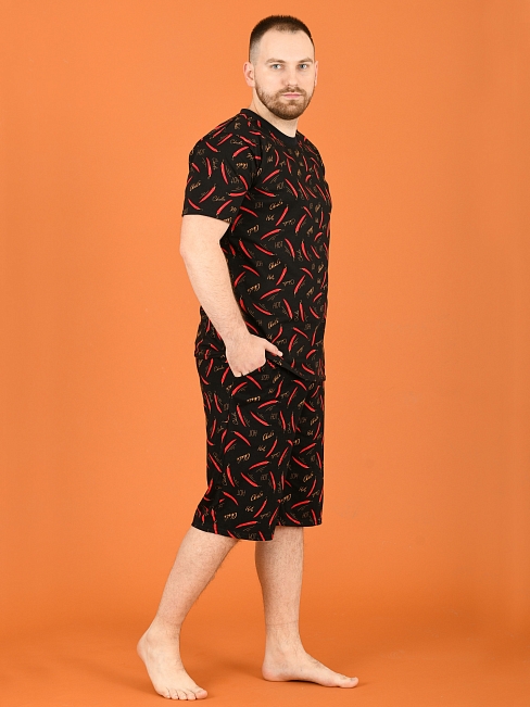 Мужская пижама с шортами из легкой хлопковой ткани.
