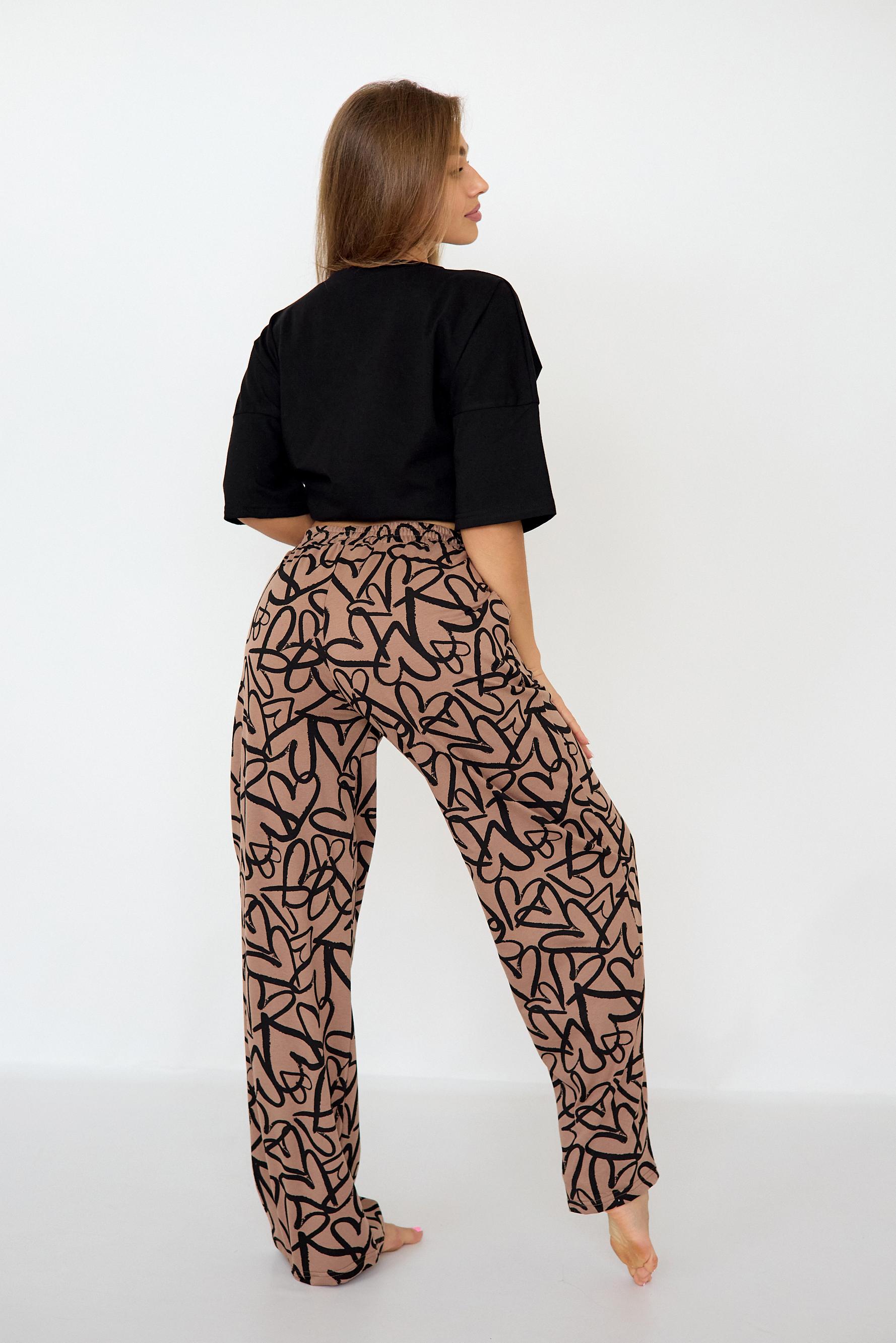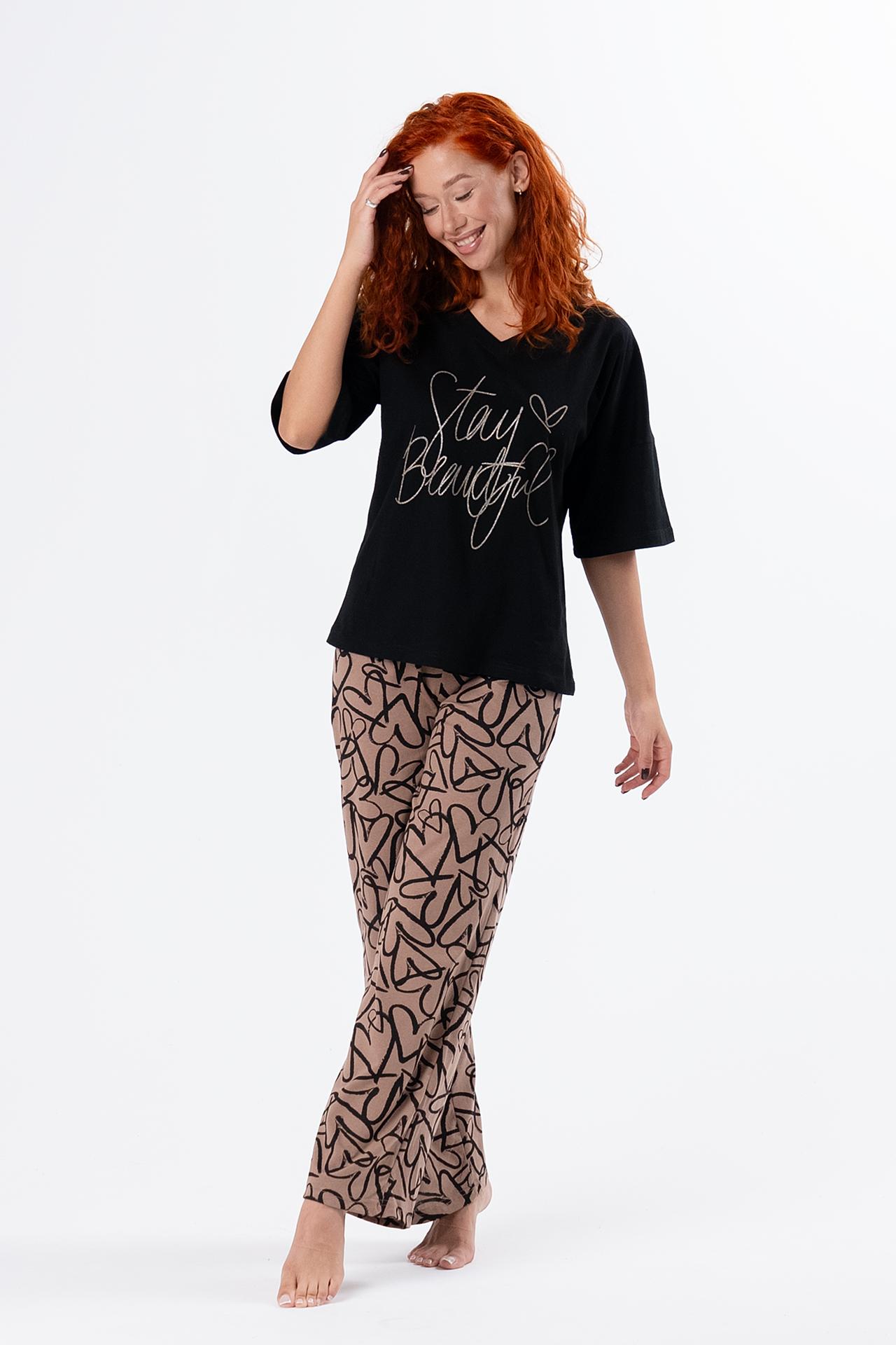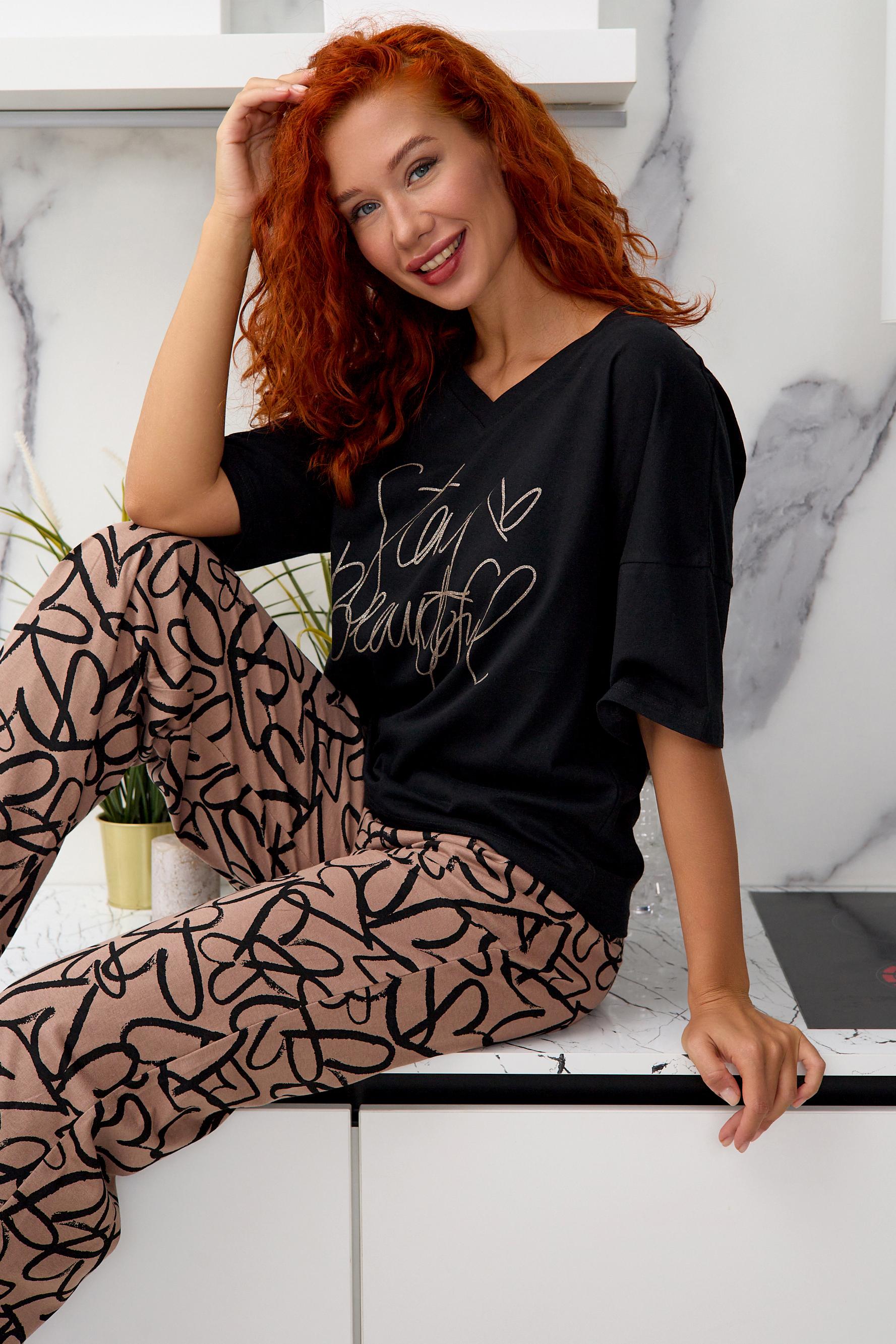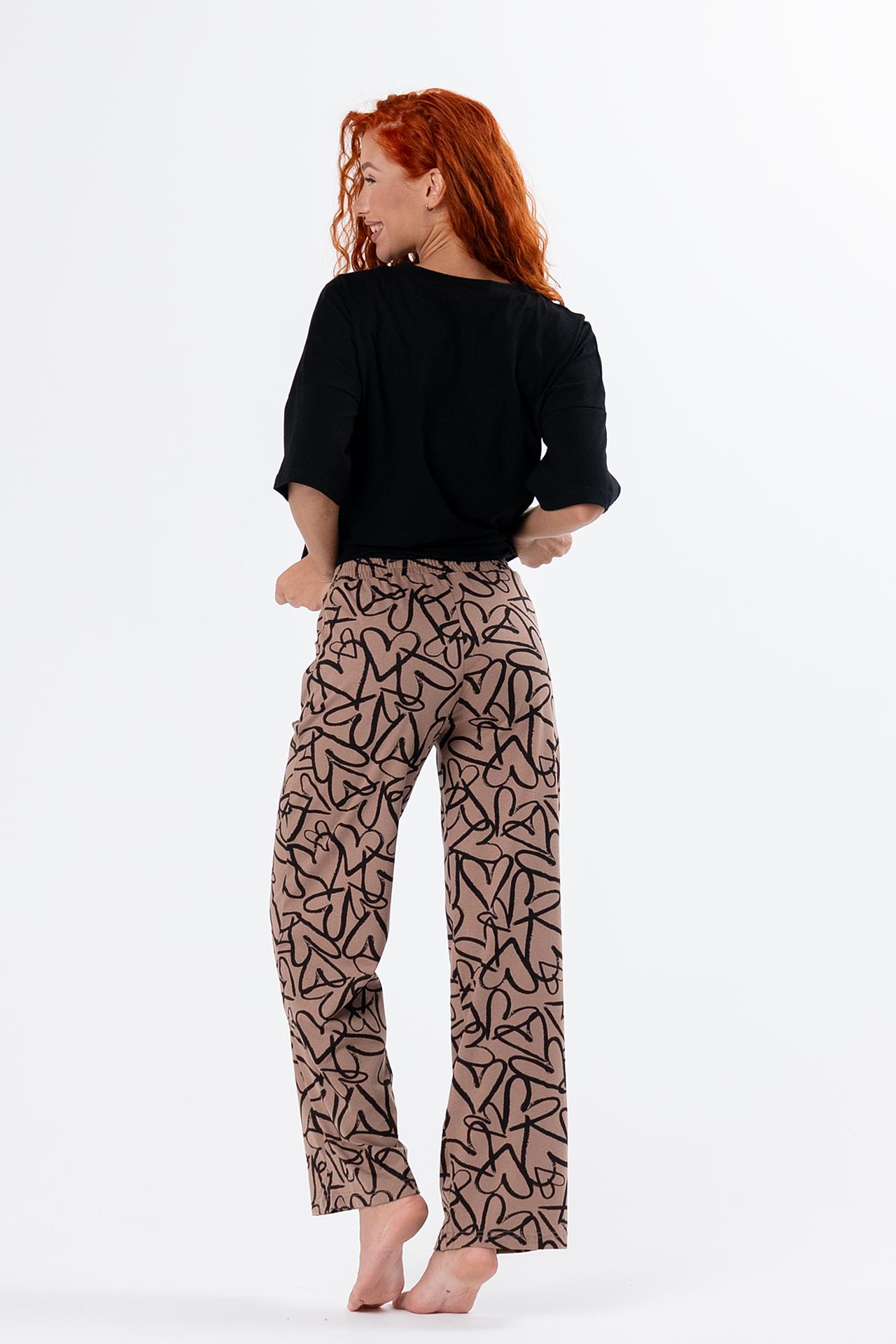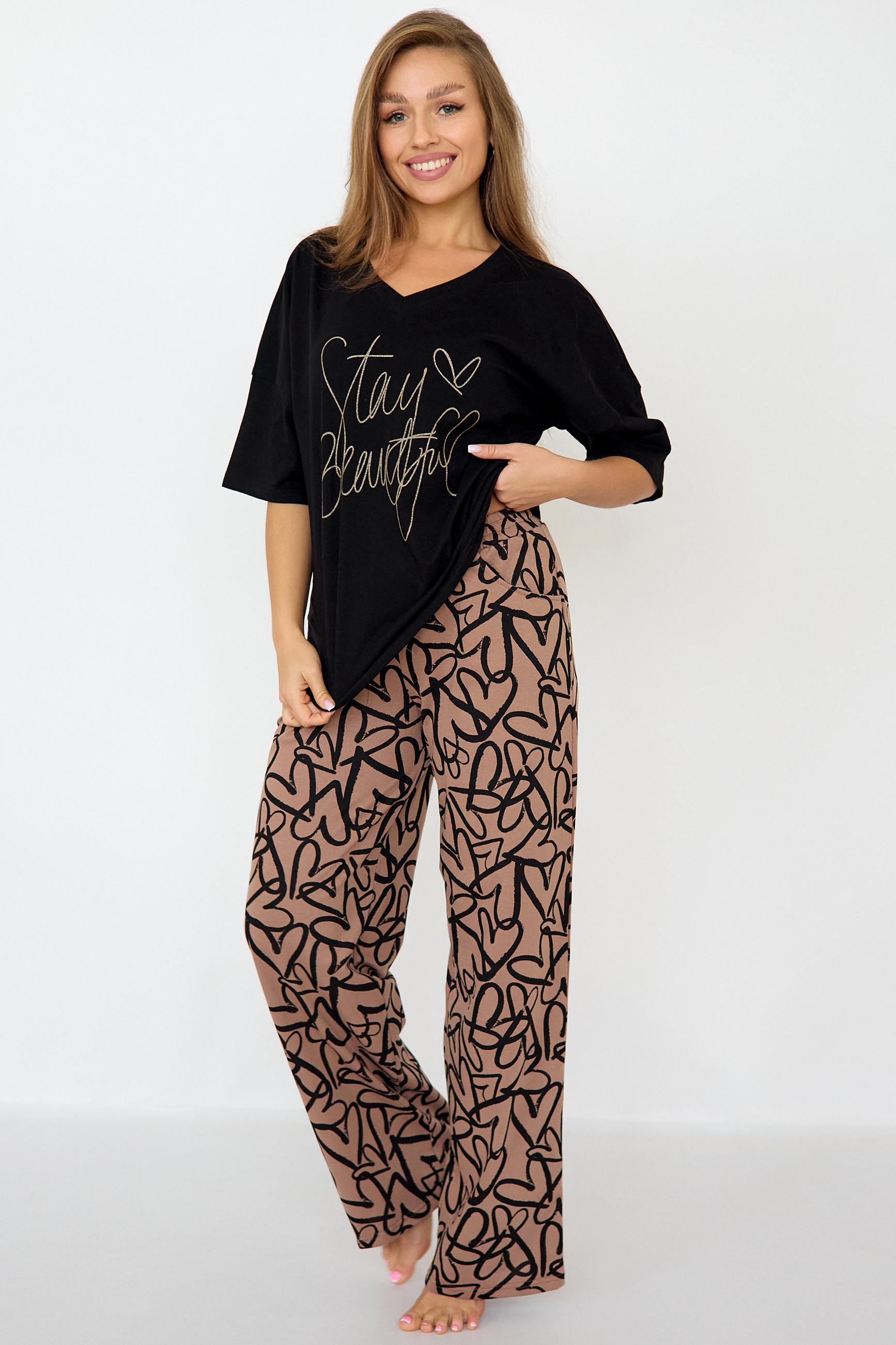 Стильная женская пижама с брюками из легкой хлопковой ткани.