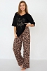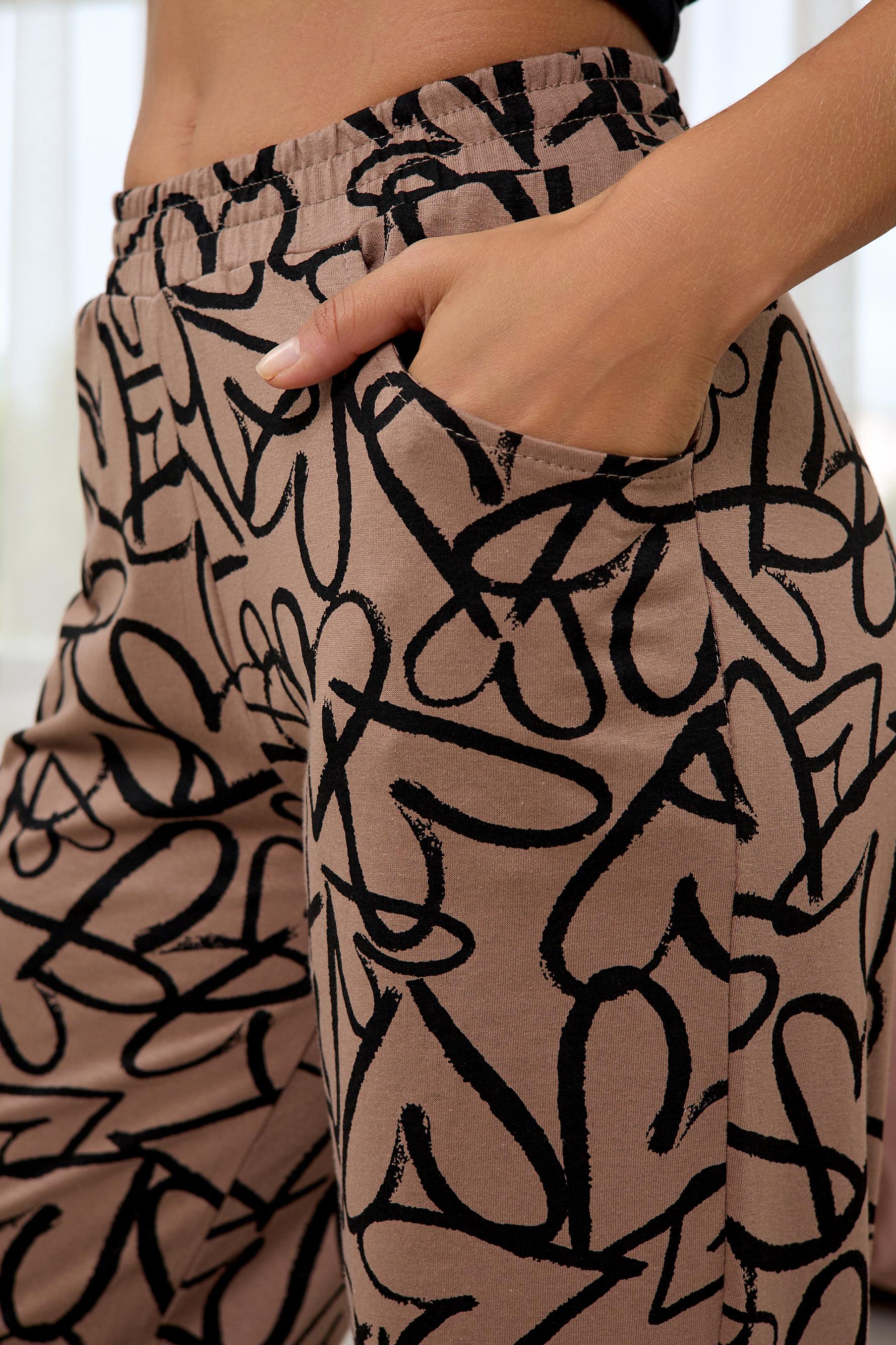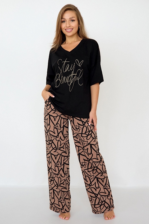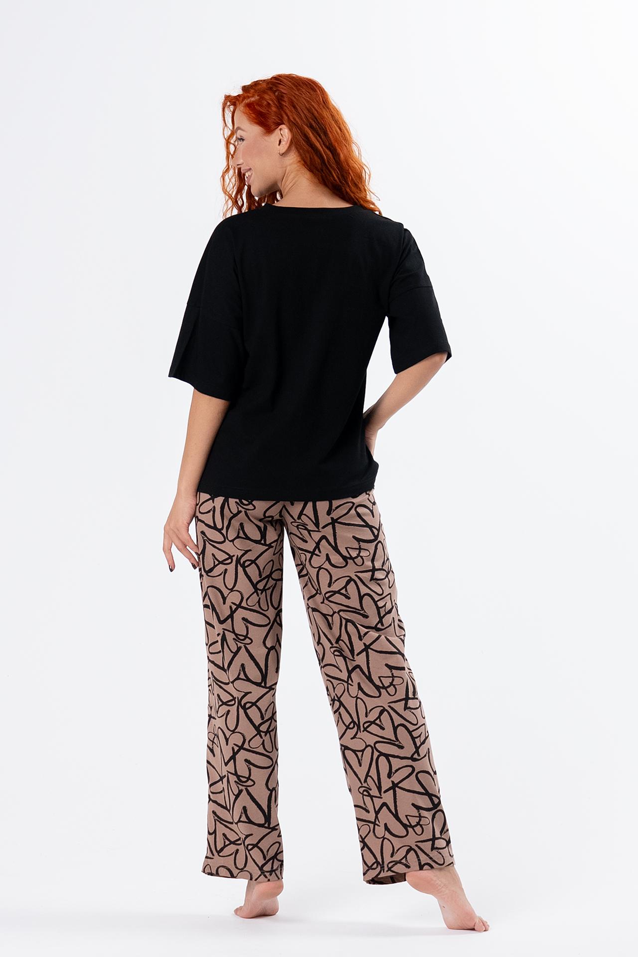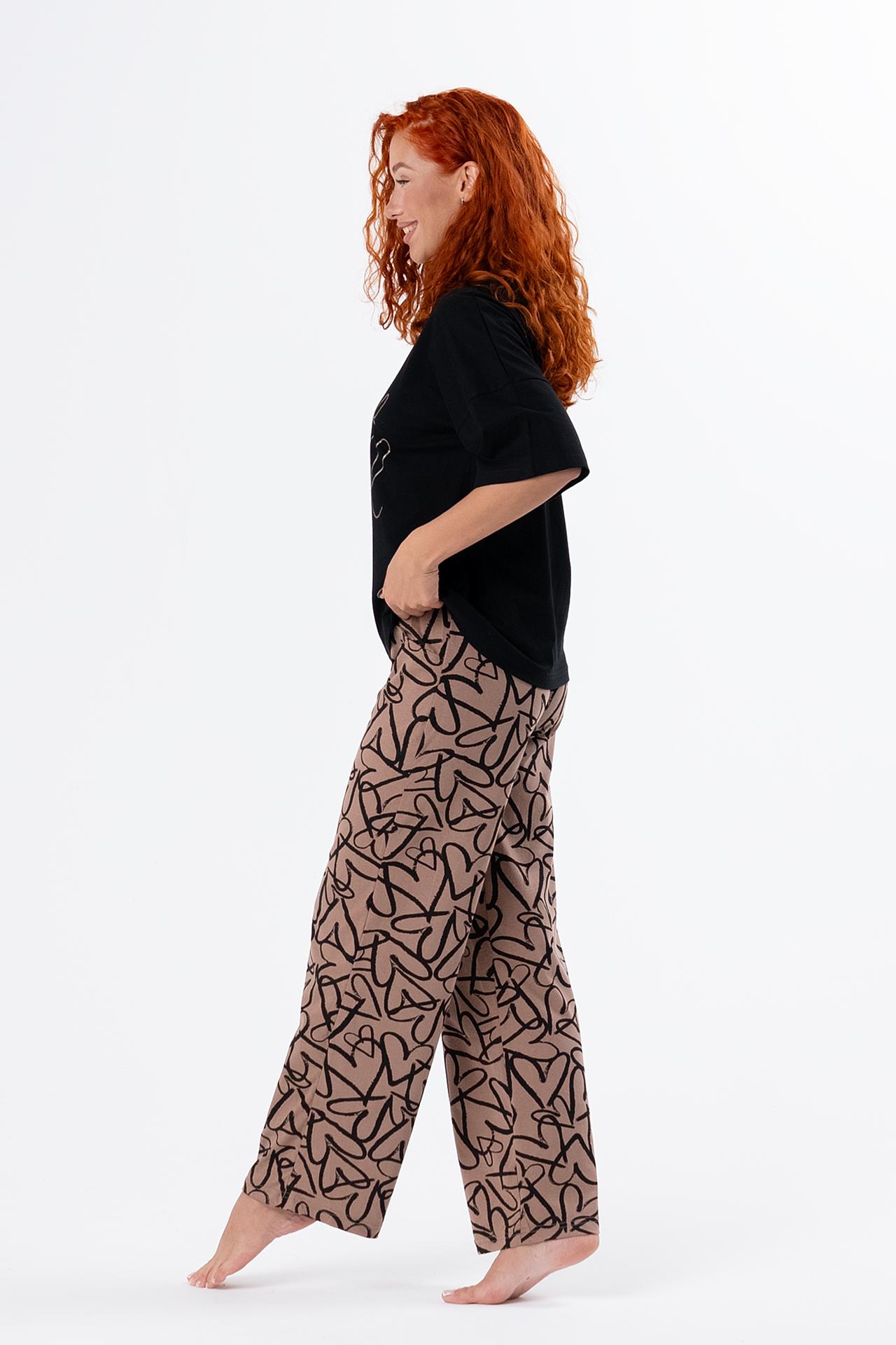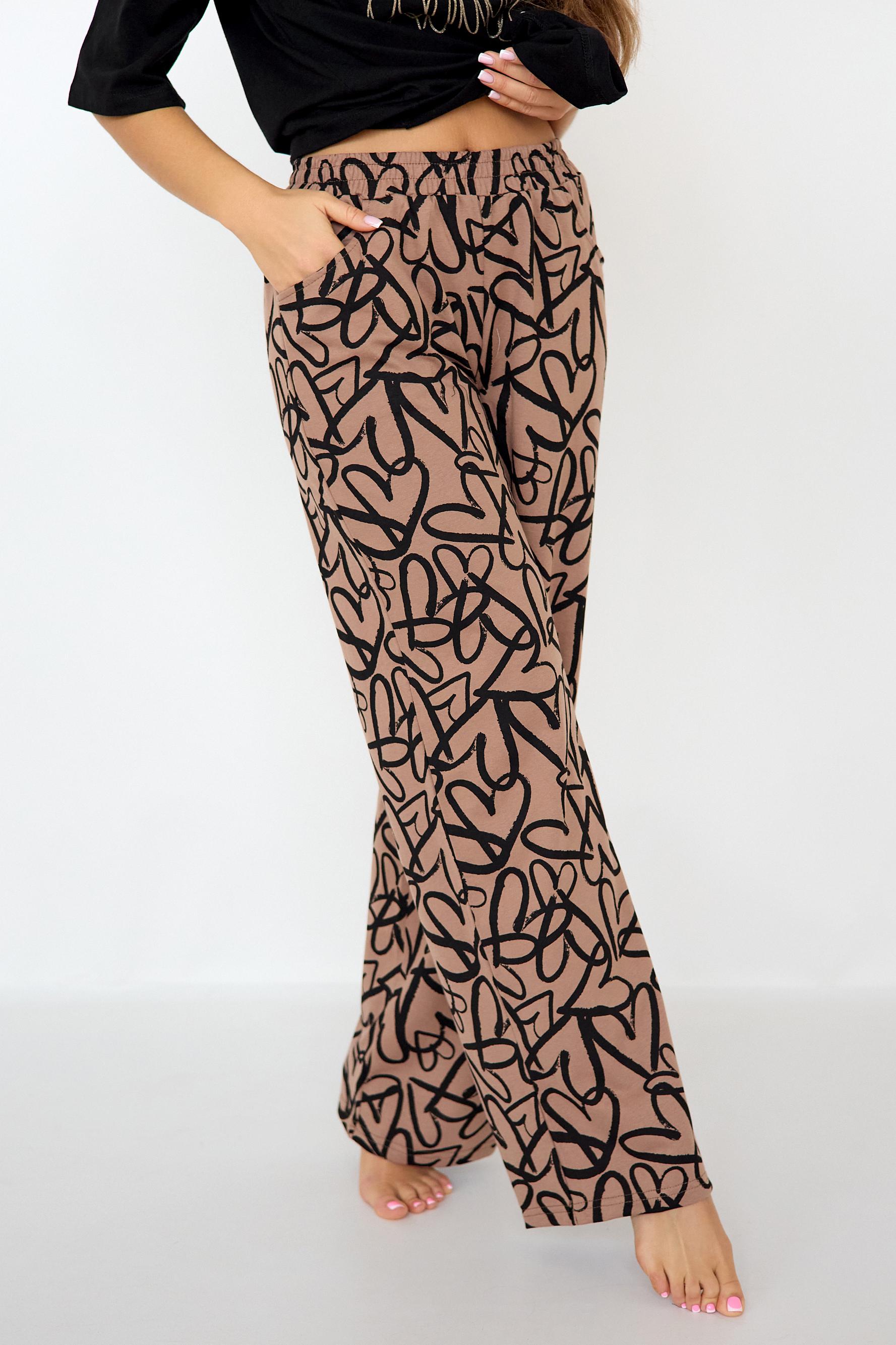 Стильная женская пижама с брюками из легкой хлопковой ткани.