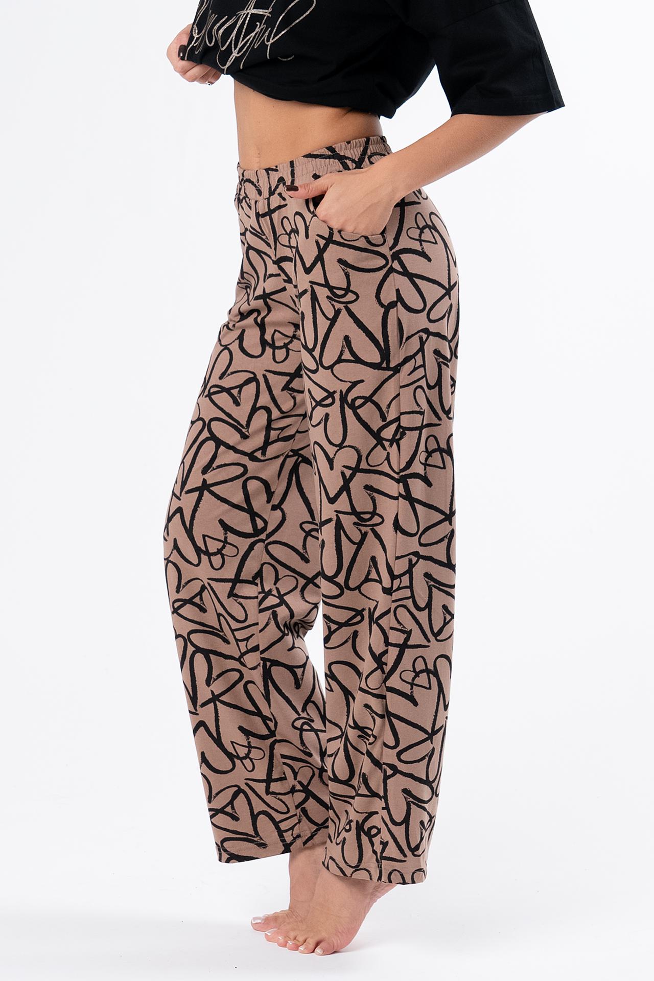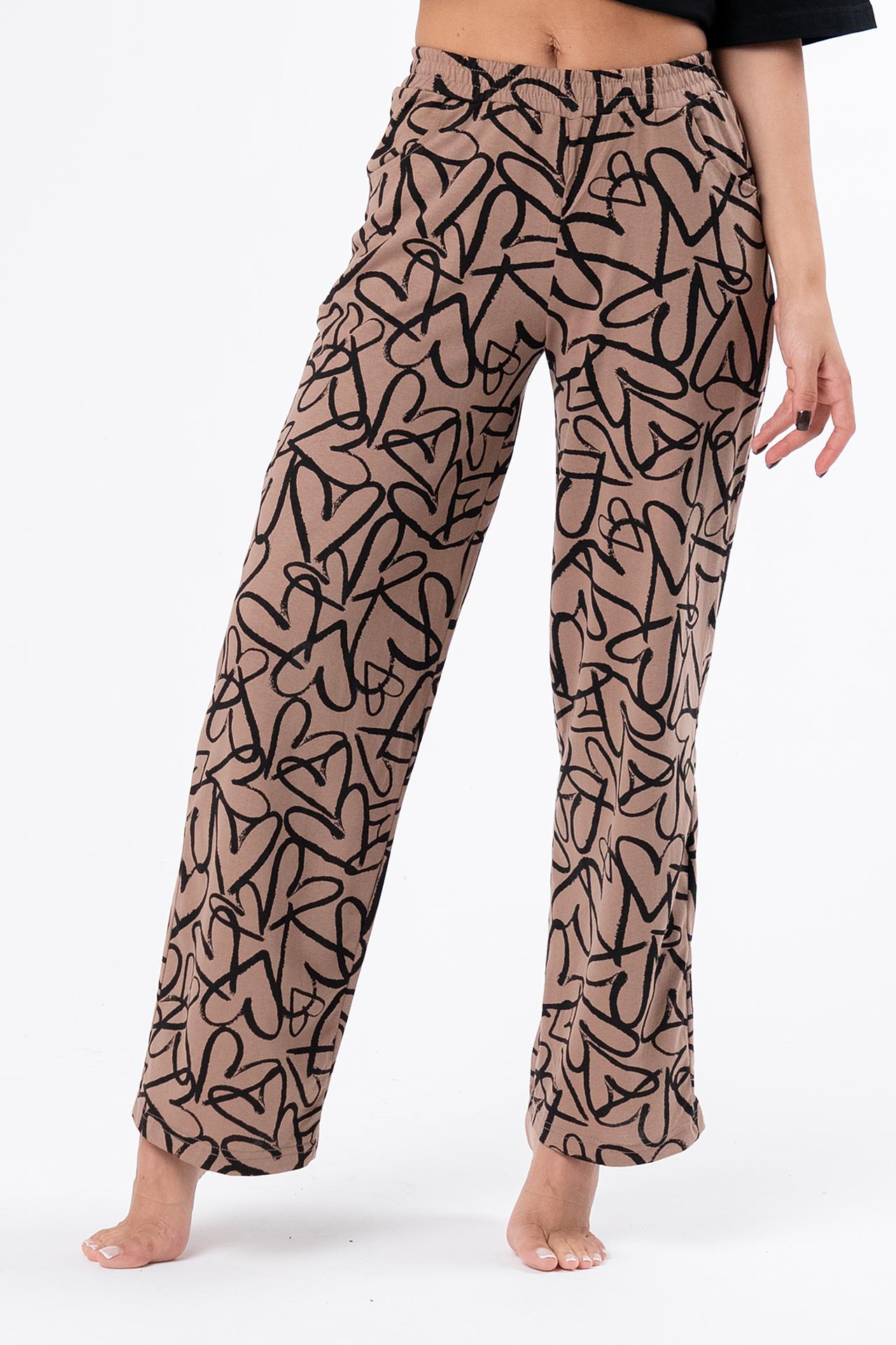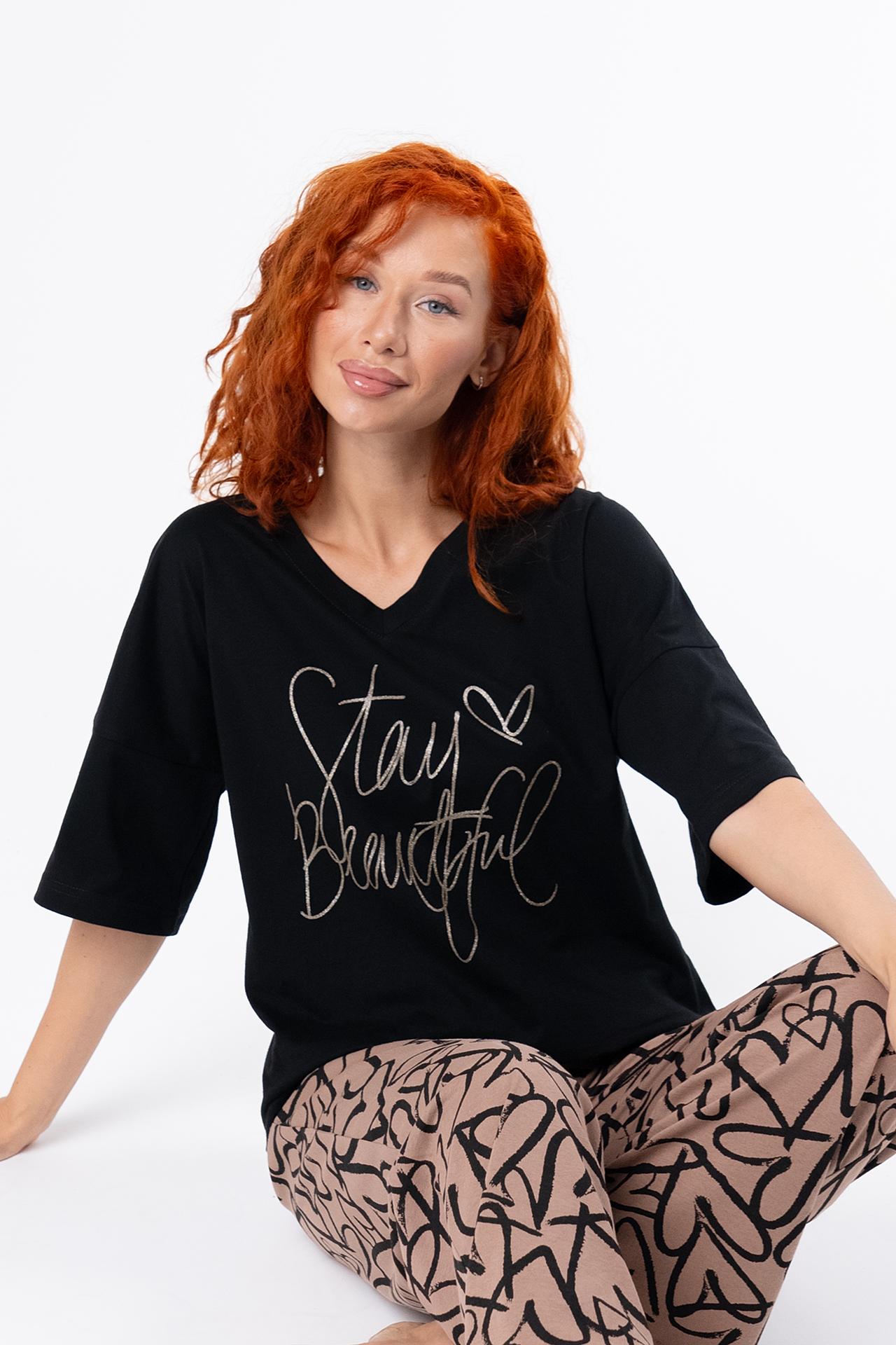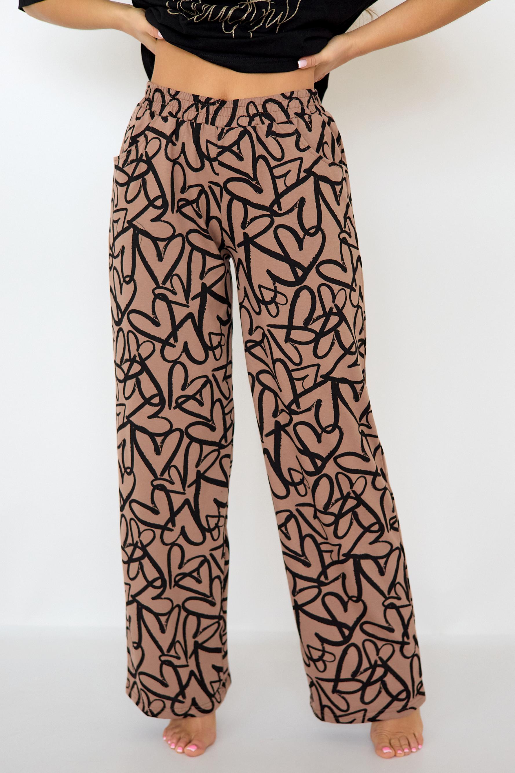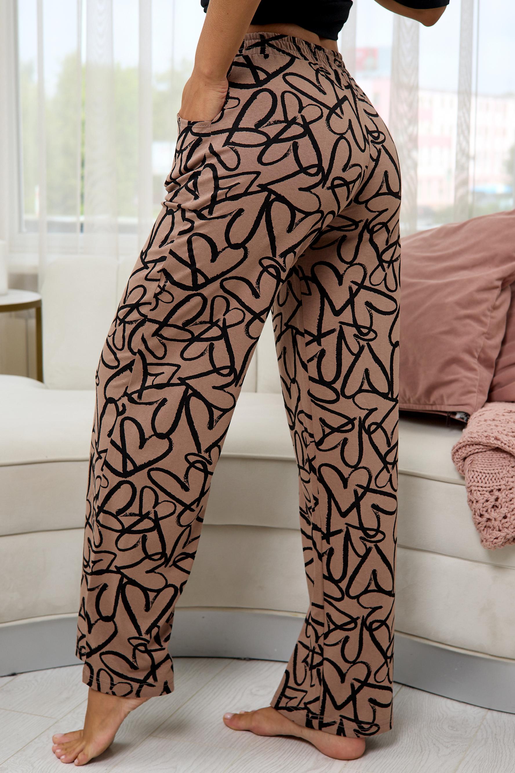 Стильная женская пижама с брюками из легкой хлопковой ткани.