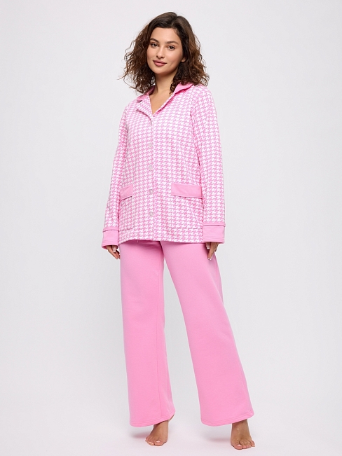 Пижама женская Салли из теплого футера. Пижама состоит из рубашки на пуговицах, с длинными рукавами и широких пижамных брюк.