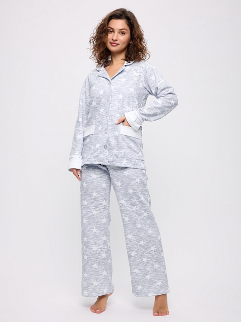 Пижама женская Салли из теплого футера. Пижама состоит из рубашки на пуговицах, с длинными рукавами и широких пижамных брюк.