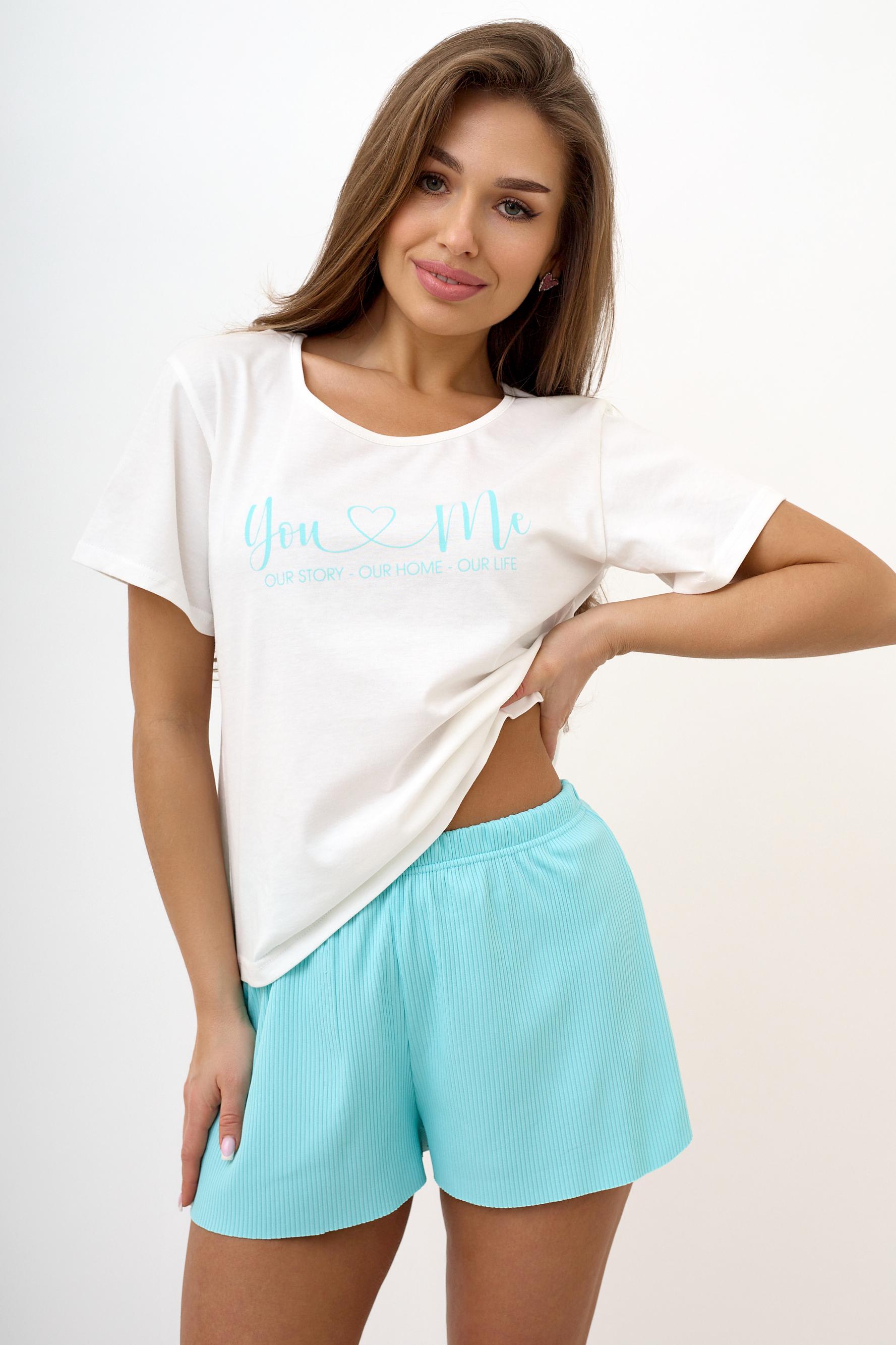 Женская пижама. Пижама состоит из футболки и шорт.