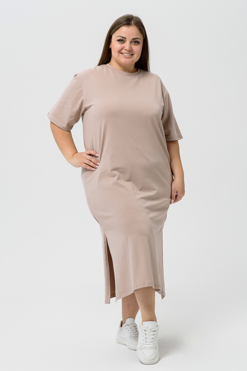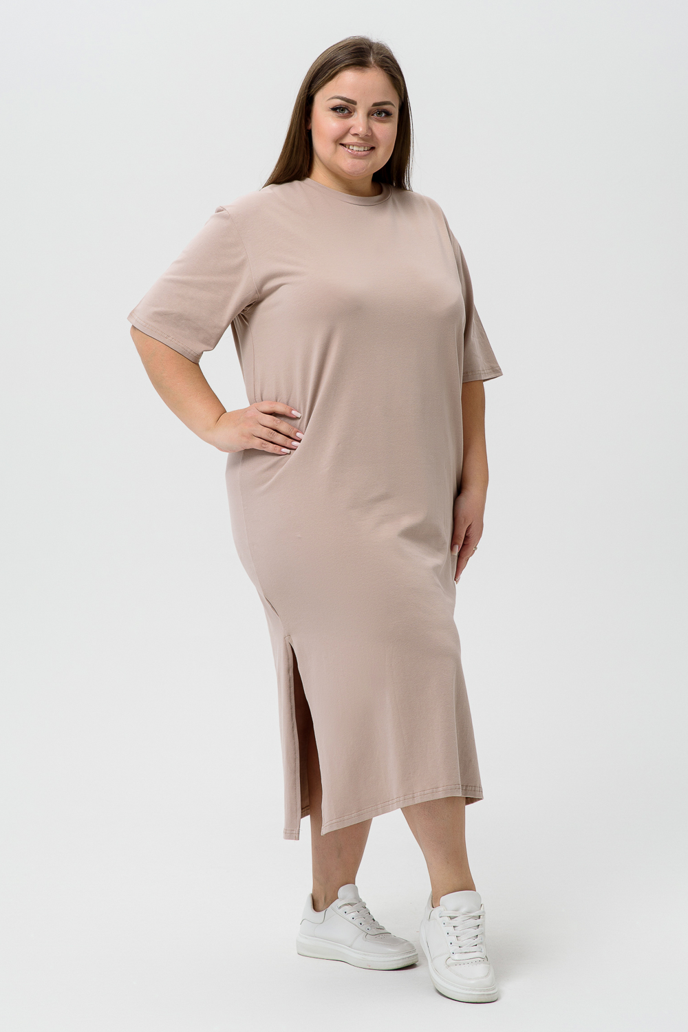 Платье-футболка - хит сезона! Свободное и комфортное - идеально решение для любой фигуры. Изготовленное из натурального хлопка, оно не только приятно на ощупь, но и гарантирует легкость и прохладу даже в самые жаркие дни.