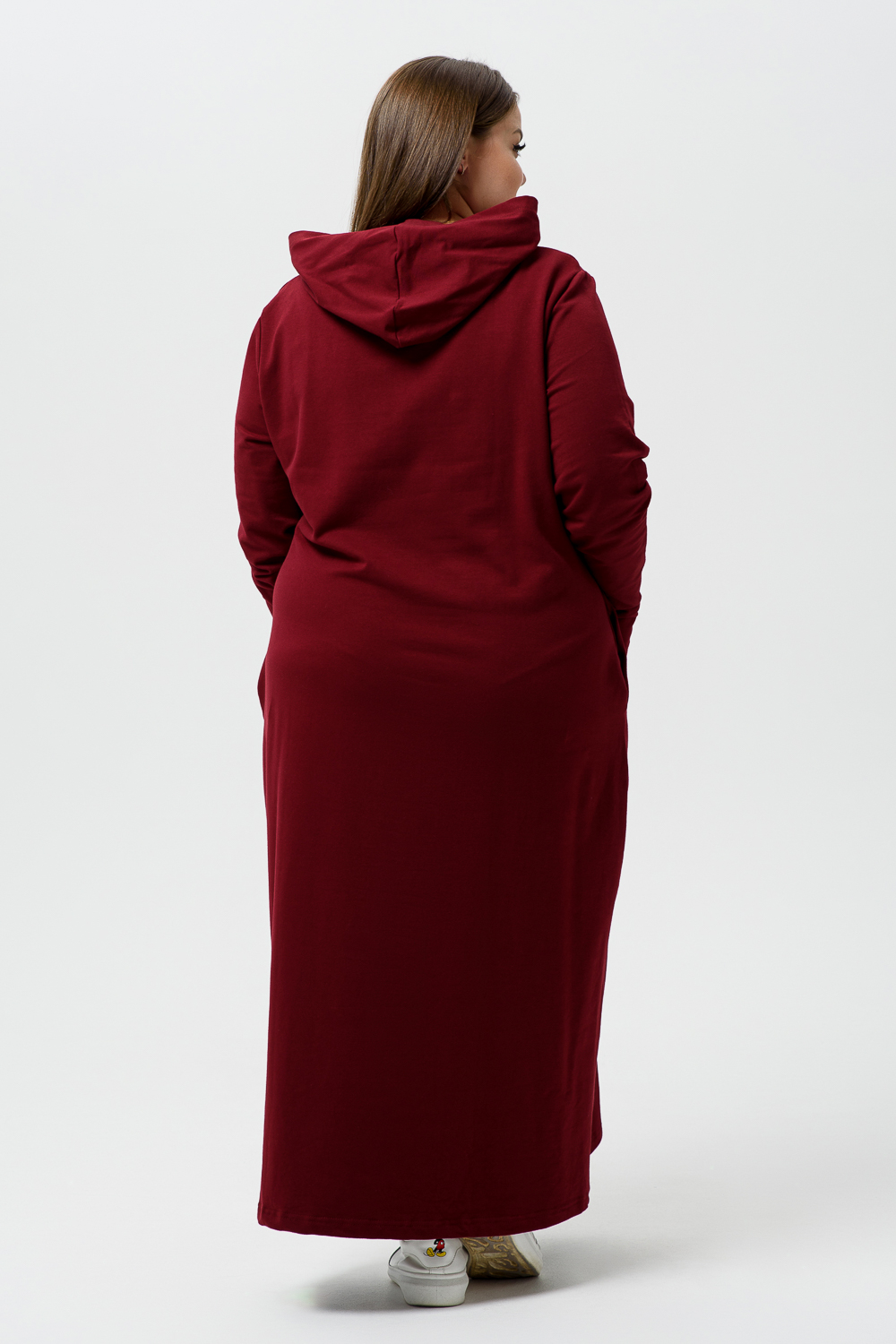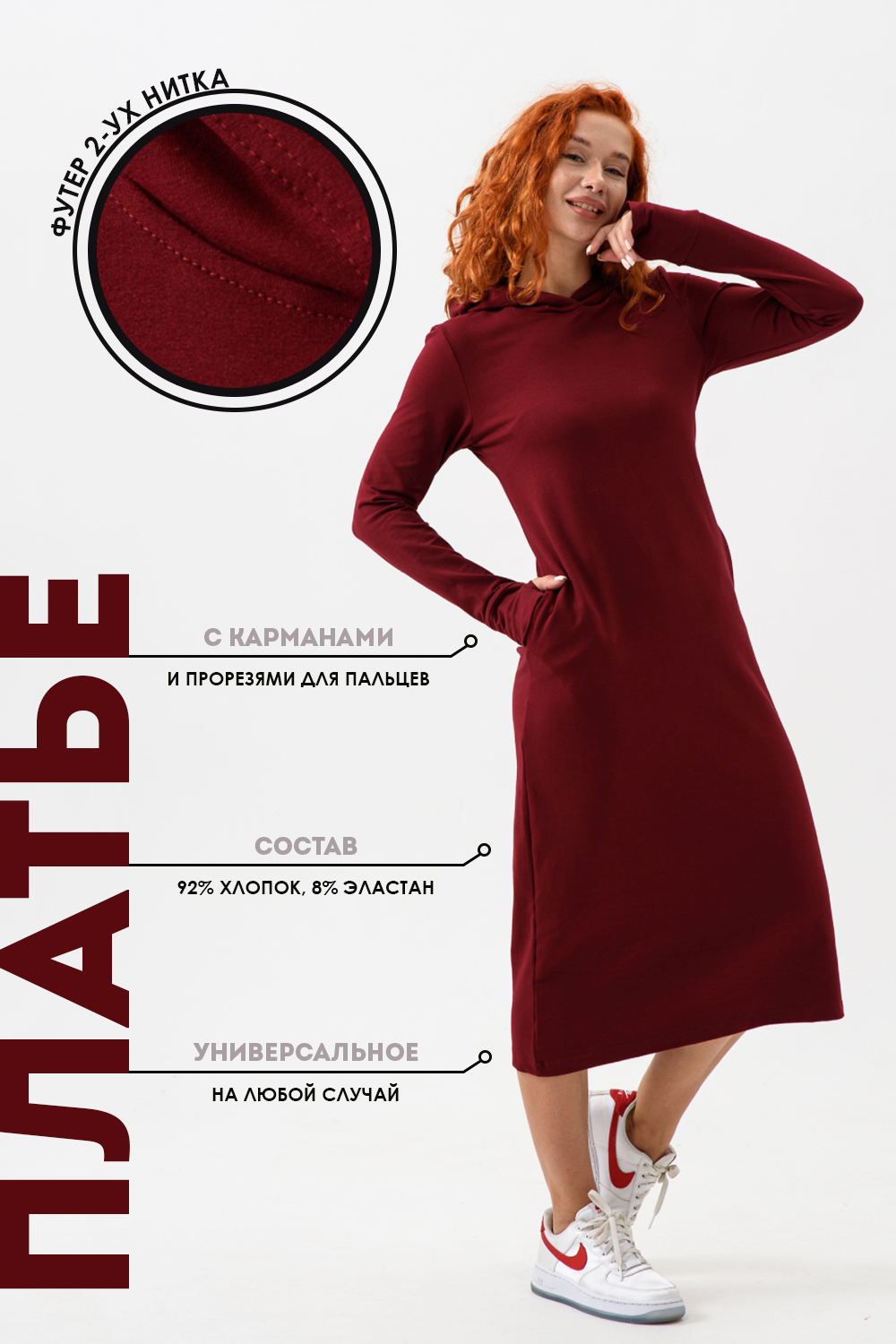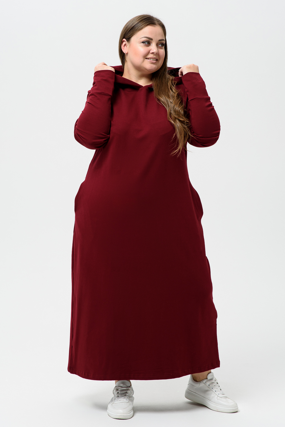 Женщины, которые хотят выглядеть привлекательно и стильно обязательно оценят это теплое платье с капюшоном и длинным рукавом. Платье - толстовка женское имеет прямой крой макси длины, поэтому легко скрывает изъяны фигуры, подчёркивая плавные линии тела, фасон хорошо подходит для полных. Длина оптимальна для прохладной погоды. Футер с лайкрой без начеса хорошо тянется и отлично держит форму. Ткань платья приятна к телу и очень проста в уходе.