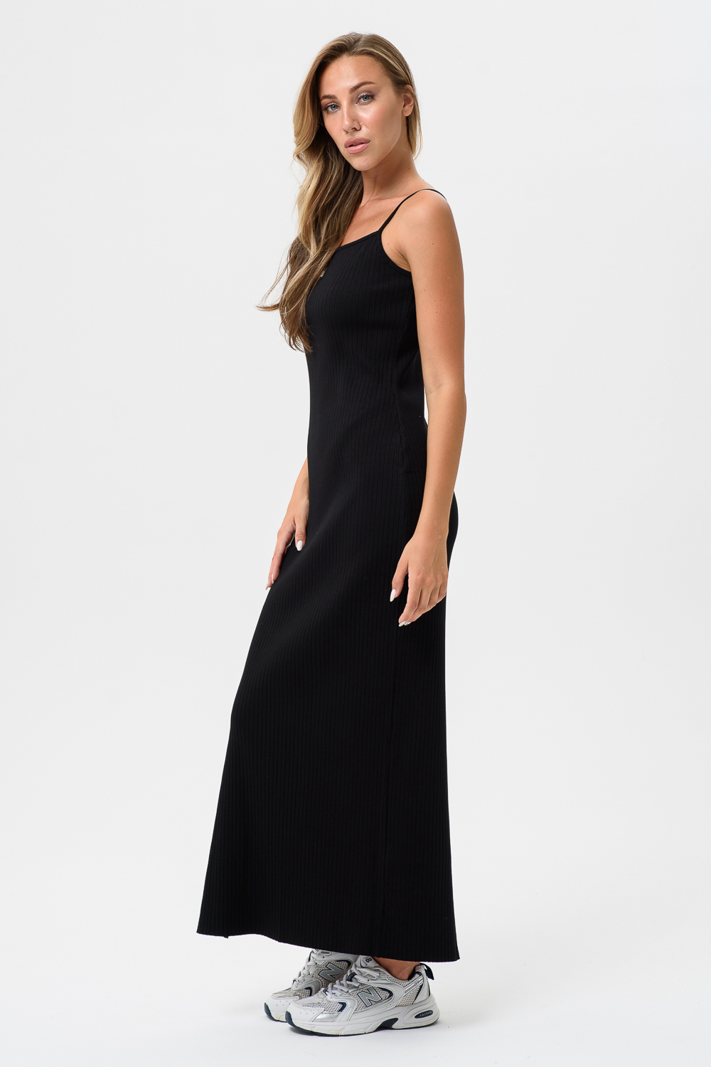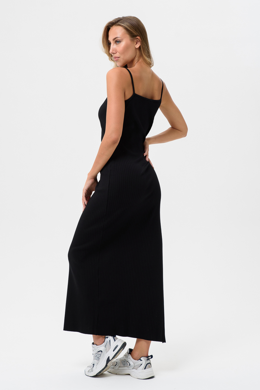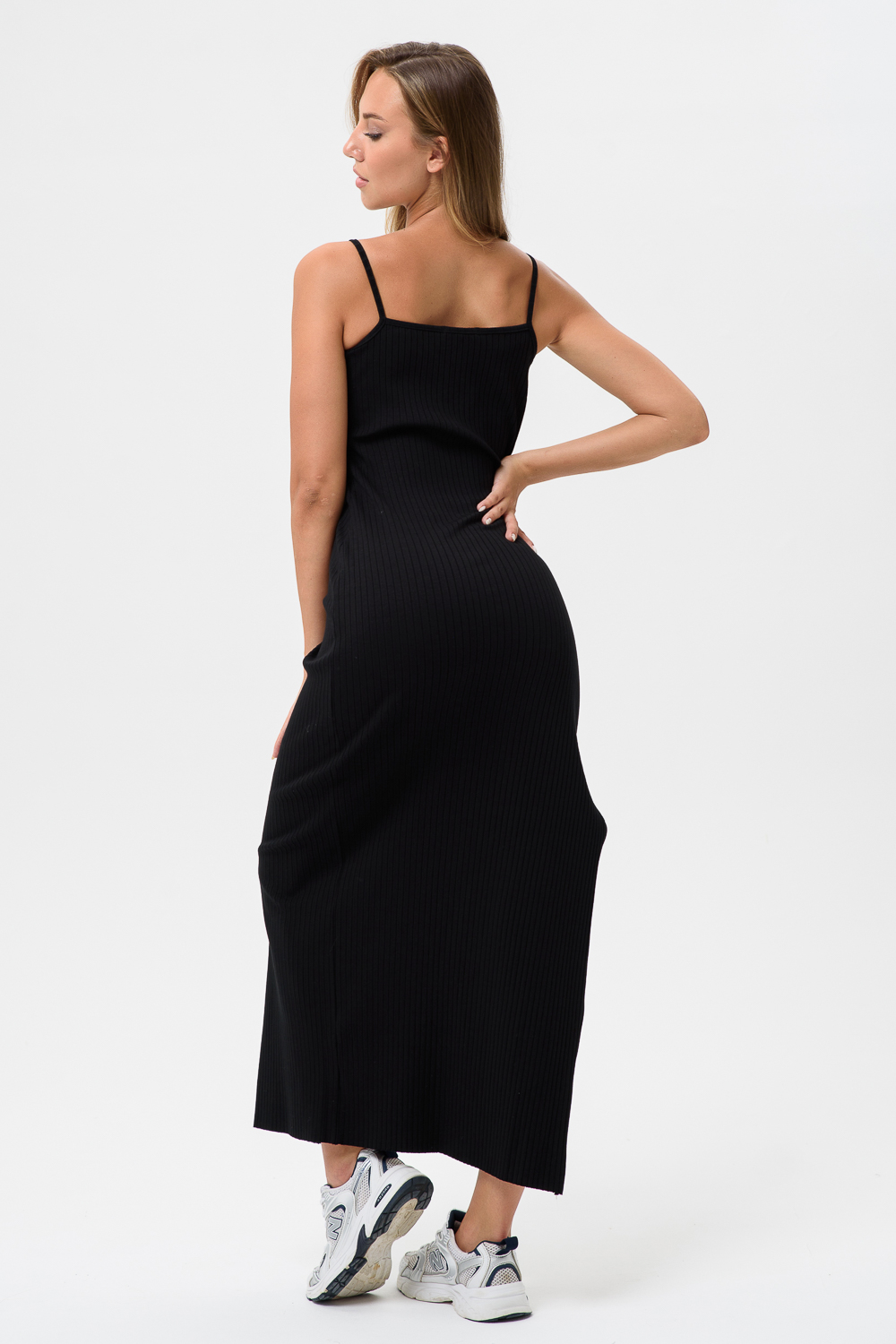 Длинное спортивное платье приталенного силуэта на тонких брительках.Мягкая ткань в рубчик обеспечивает комфорт.Идиальный вариант на каждый день или в отпуск,на море или путешествий и отдыха.Длинное сексуальное платье с разрезом идеально сочетается с любой спортивной обувью будь,то кросовки,кеды,сандали.