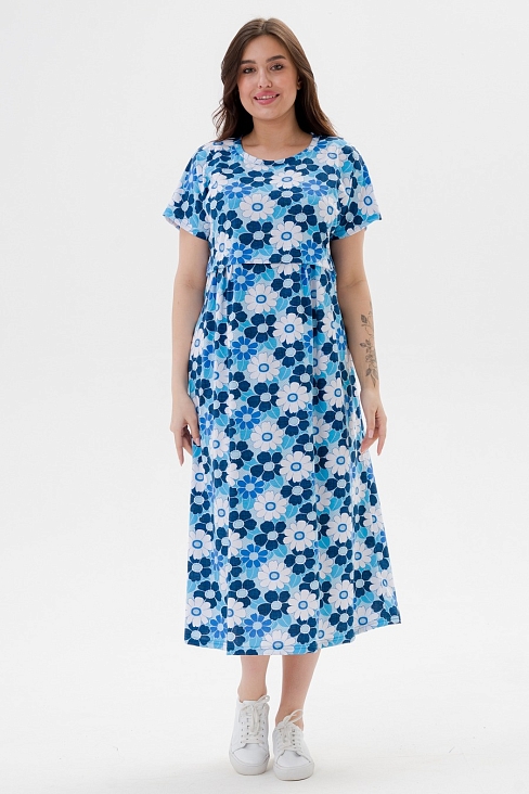 Платье женское из кулирки Миранда / Голубая ромашка макси