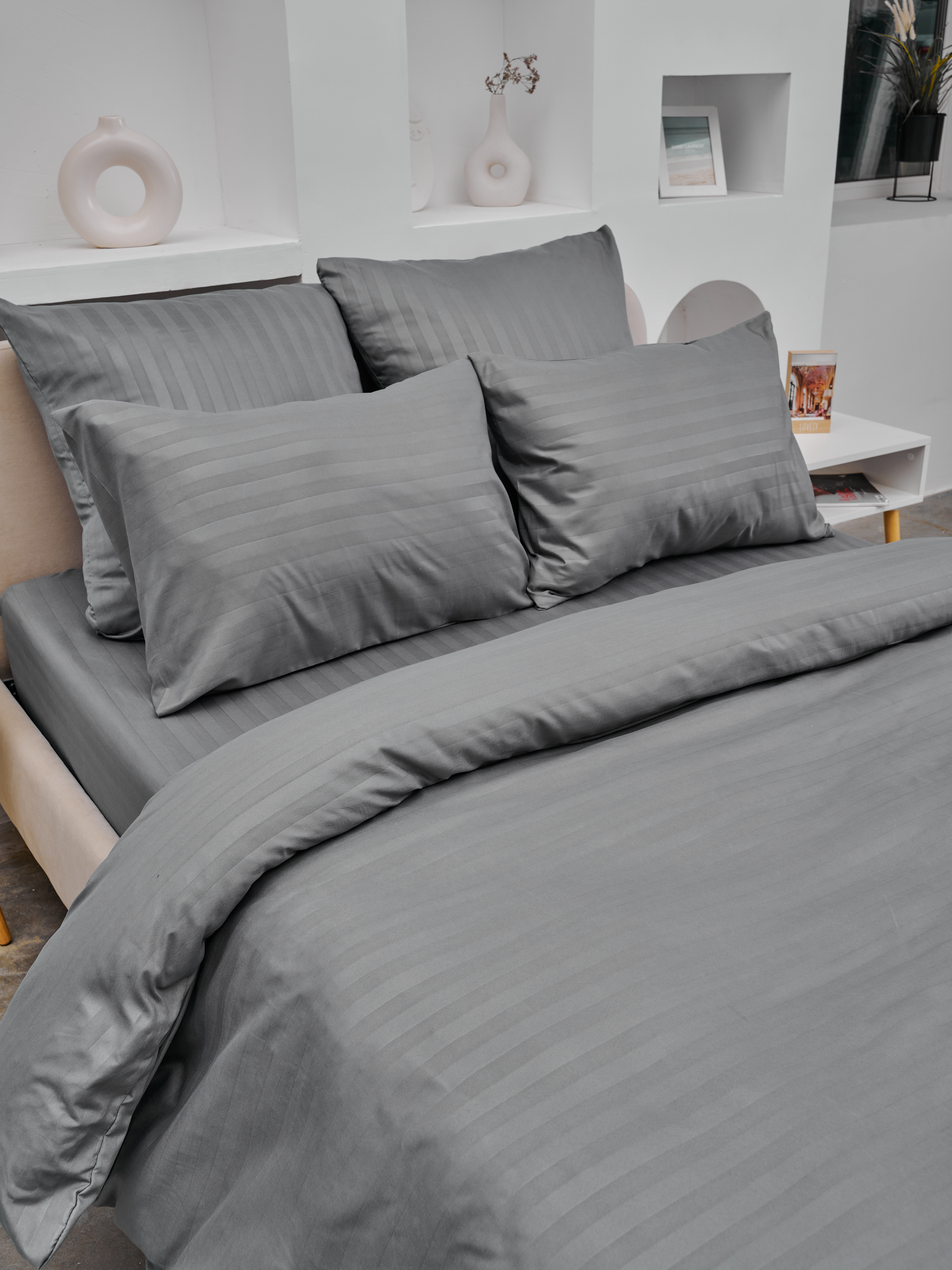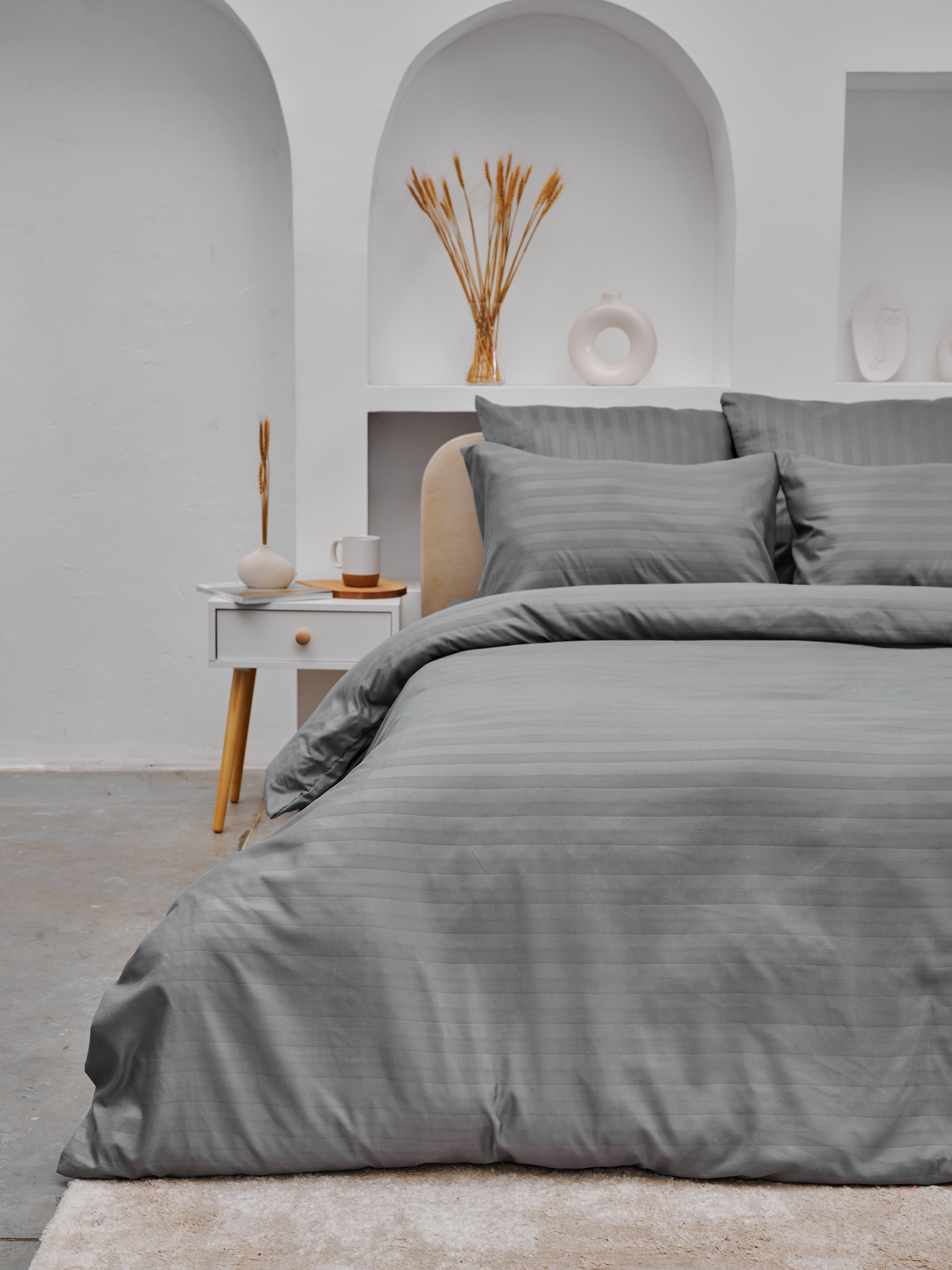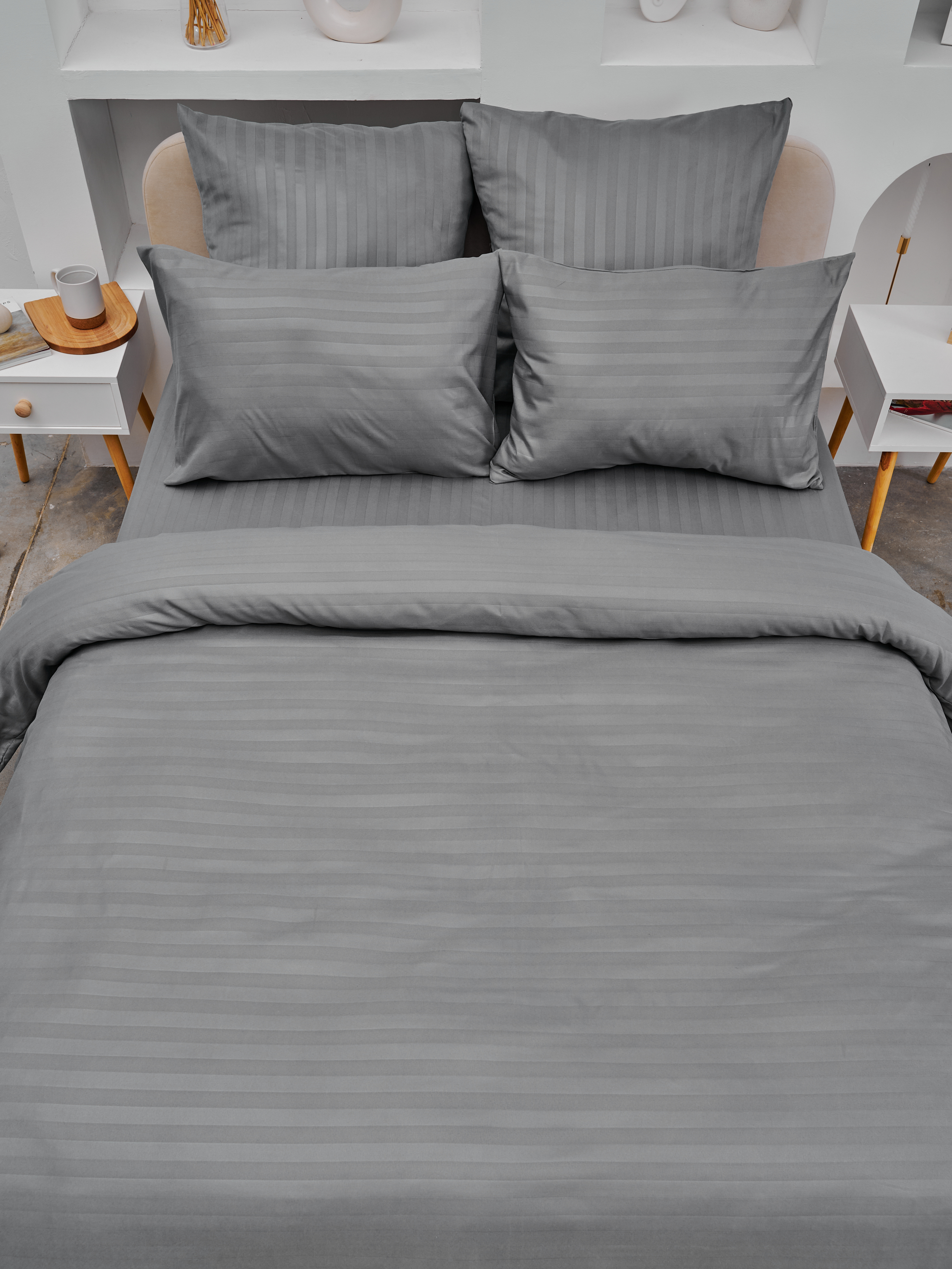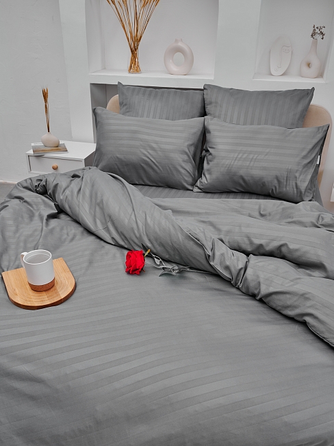 Пододеяльник микрофибра страйп / Светлый серый