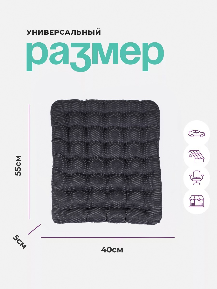 Подушка автомобильная, подушка на сидение с ПВХ нанесением с полиэфирным волокном. Мягкая, обладает массажным эффектом за счет нанесения ПВХ точек. Имеет удобную высоту 4 см и плотную набивку. Станет полезным приобретением для тех, кто много времени проводит, сидя за компьютером или в автомобиле. Рекомендована сухая чистка. Отбеливание запрещено.