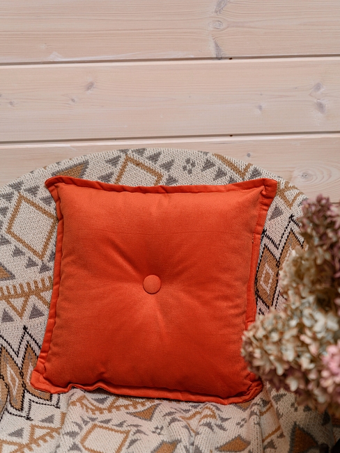 Подушка декоративная на диван с пиковкой / Оранжево-красный
