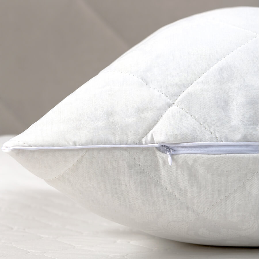 Стеганая подушка – это подушка, имеющая сложную «конструкцию», состоящую из двух камер. Первая камера изготовлена из поплина, простеганного с синтепоном, что позволяет подушке не терять форму и добавляет упругости. Поплин - это натуральная хлопковая ткань без примеси синтетики обладающая высокой прочностью, воздухопроницаемостью и гипоаллергенными свойствами. Приятным эстетическим дополнением станет атласный кант. Вшитая потайная молния даст возможность снимать верхний чехол и стирать привычным для Вас способом, при этом наполнитель останется во второй камере и никак не пострадает при стирке. Вам не придется относить изделие в химчистку что бы сохранить его первоначальные свойства. Вторая камера выполнена из спанбонда, в нее помещается наполнитель и надежно зашивается в ней. Наполнитель не рассыпится при использовании и уходе. При желании можно регулировать количество наполнителя увеличивая или уменьшая плотность набивки. Состав наполнителя - силиконизированное волокно изготовленное по современным технологиям с учетом требований к комфортному сну и удобству. Не комкуется, не сбивается, остается пышным и воздушным на долгое время. Данная модель - это отличный вариант для практичной современной хозяйки.