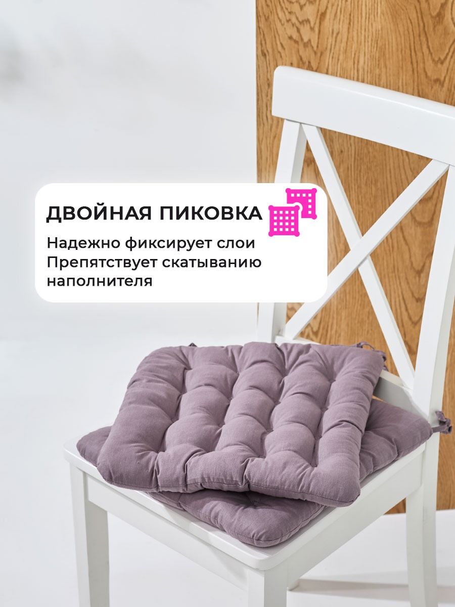 Универсальная сидушка с тафтингом найдет свое применение как эстетичная интерьерная накладка на пуфик в прихожей, как диванная сидушка 35х37 см на дачу или как мебельная накидка для кухни. Двусторонний чехол позволяет легко менять стиль, что делает этот подарок универсальным и практичным. Двухсторонняя около квадратная форма подушечки на стулья и толщина 4-5 см делают ее подходящей под большинство моделей мебели для сидения: для кухни, так и на скамью или на банкетку в гардеробной и даже на садовый диван. Наполнитель из холлофайбера создан для того, чтобы вы чувствовали себя комфортно даже во время длительного сидения. Он обеспечивает отличную поддержку как для спины, так и для комфорта. Плотная набивка средней жесткости обеспечивает комфорт. Вы можете использовать их для вашего ребенка или на детский стул в качестве подушки бустера, помогая им достичь удобной высоты за обеденным или письменным столом и поддерживая правильную осанку. Эта подушка с завязками отлично подойдет компьютерного места, создавая уютную атмосферу в каждой комнате. Декоративные элементы в виде завязок, помогут зафиксировать подушку на табуретке в нужном положении. Прошивка в стиле "пиковка" позволяют изделию оставаться ультра мягкой и в то же время чехол снаружи 100% гладкокрашеный хлопок, гипоаллергенный.