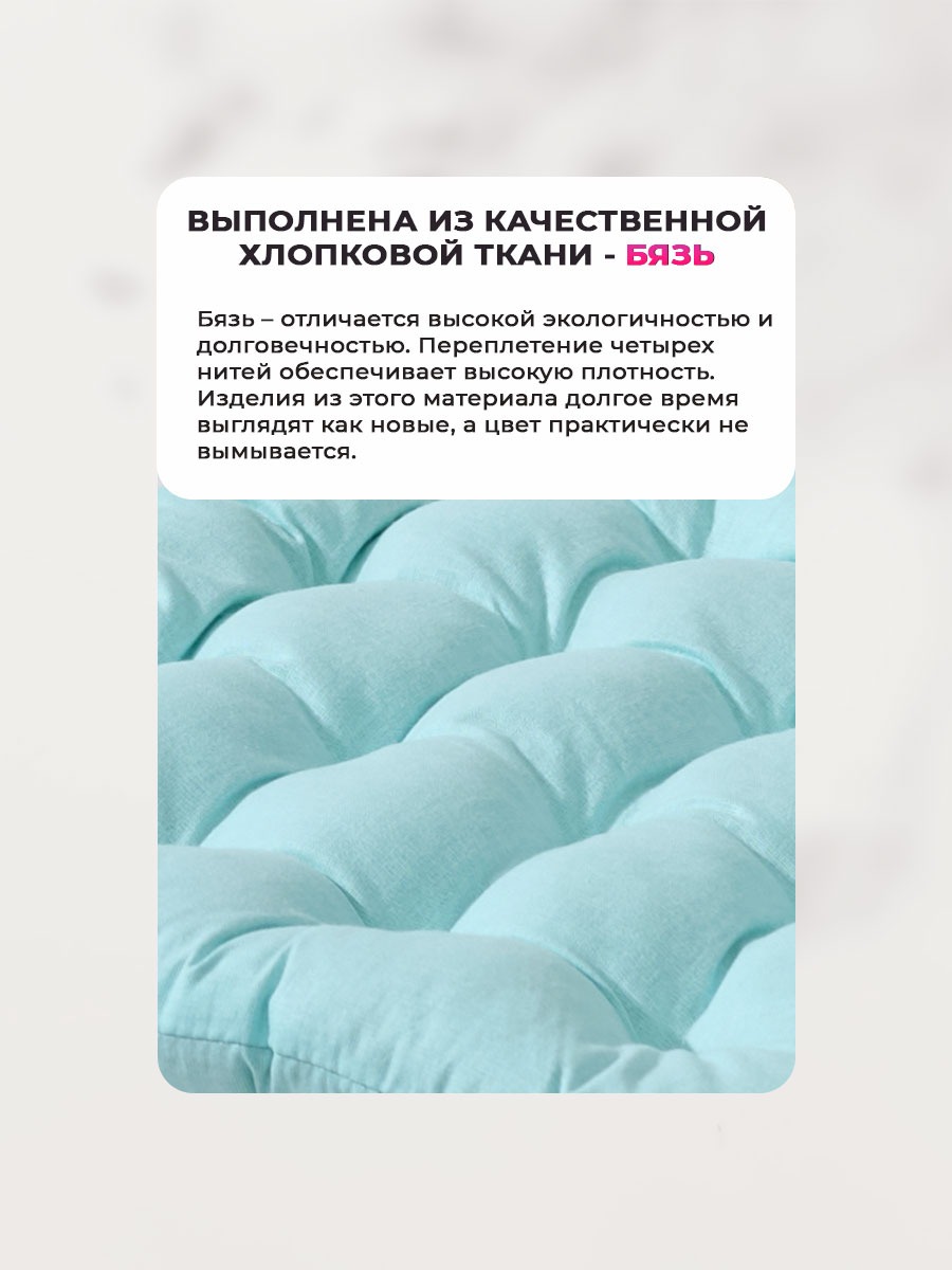 Универсальная сидушка с тафтингом найдет свое применение как эстетичная интерьерная накладка на пуфик в прихожей, как диванная сидушка 35х37 см на дачу или как мебельная накидка для кухни. Двусторонний чехол позволяет легко менять стиль, что делает этот подарок универсальным и практичным. Двухсторонняя около квадратная форма подушечки на стулья и толщина 4-5 см делают ее подходящей под большинство моделей мебели для сидения: для кухни, так и на скамью или на банкетку в гардеробной и даже на садовый диван. Наполнитель из холлофайбера создан для того, чтобы вы чувствовали себя комфортно даже во время длительного сидения. Он обеспечивает отличную поддержку как для спины, так и для комфорта. Плотная набивка средней жесткости обеспечивает комфорт. Вы можете использовать их для вашего ребенка или на детский стул в качестве подушки бустера, помогая им достичь удобной высоты за обеденным или письменным столом и поддерживая правильную осанку. Эта подушка с завязками отлично подойдет компьютерного места, создавая уютную атмосферу в каждой комнате. Декоративные элементы в виде завязок, помогут зафиксировать подушку на табуретке в нужном положении. Прошивка в стиле "пиковка" позволяют изделию оставаться ультра мягкой и в то же время чехол снаружи 100% гладкокрашеный хлопок, гипоаллергенный.