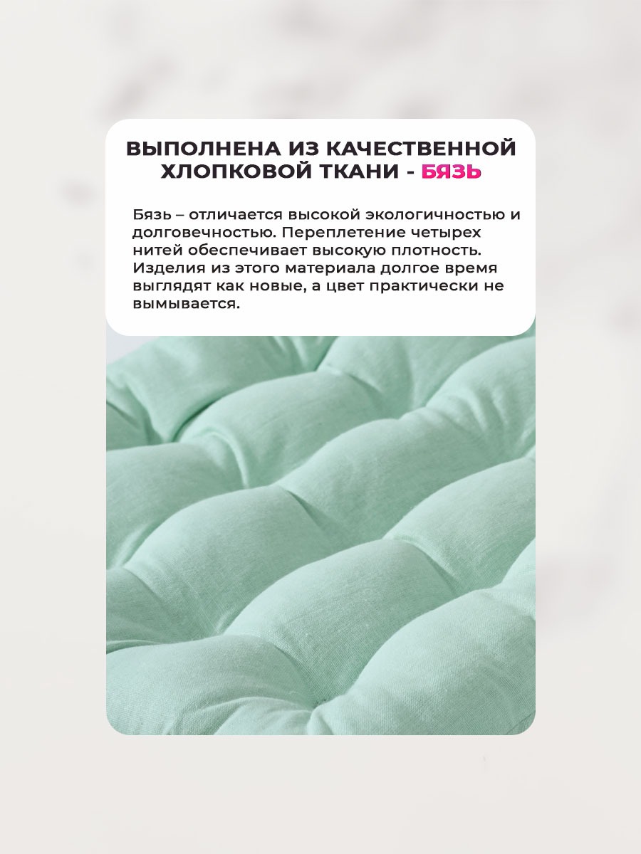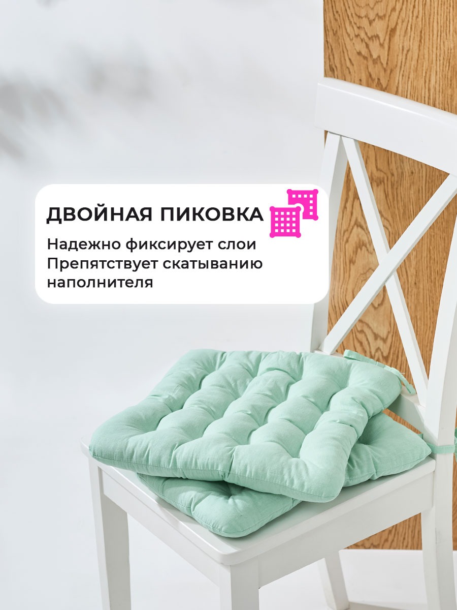 Универсальная сидушка с тафтингом найдет свое применение как эстетичная интерьерная накладка на пуфик в прихожей, как диванная сидушка 35х37 см на дачу или как мебельная накидка для кухни. Двусторонний чехол позволяет легко менять стиль, что делает этот подарок универсальным и практичным. Двухсторонняя около квадратная форма подушечки на стулья и толщина 4-5 см делают ее подходящей под большинство моделей мебели для сидения: для кухни, так и на скамью или на банкетку в гардеробной и даже на садовый диван. Наполнитель из холлофайбера создан для того, чтобы вы чувствовали себя комфортно даже во время длительного сидения. Он обеспечивает отличную поддержку как для спины, так и для комфорта. Плотная набивка средней жесткости обеспечивает комфорт. Вы можете использовать их для вашего ребенка или на детский стул в качестве подушки бустера, помогая им достичь удобной высоты за обеденным или письменным столом и поддерживая правильную осанку. Эта подушка с завязками отлично подойдет компьютерного места, создавая уютную атмосферу в каждой комнате. Декоративные элементы в виде завязок, помогут зафиксировать подушку на табуретке в нужном положении. Прошивка в стиле "пиковка" позволяют изделию оставаться ультра мягкой и в то же время чехол снаружи 100% гладкокрашеный хлопок, гипоаллергенный.