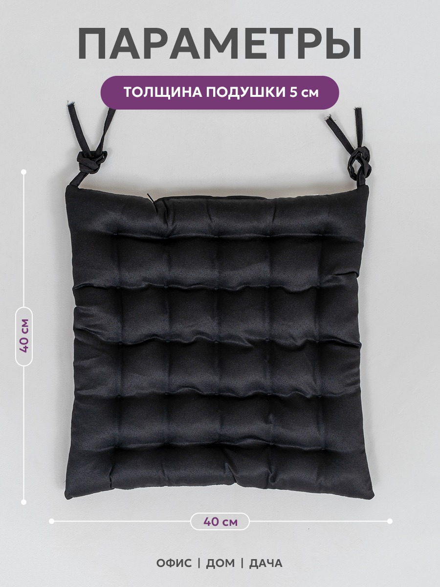 Подушка на стул с завязками (гречневая лузга) / Черный