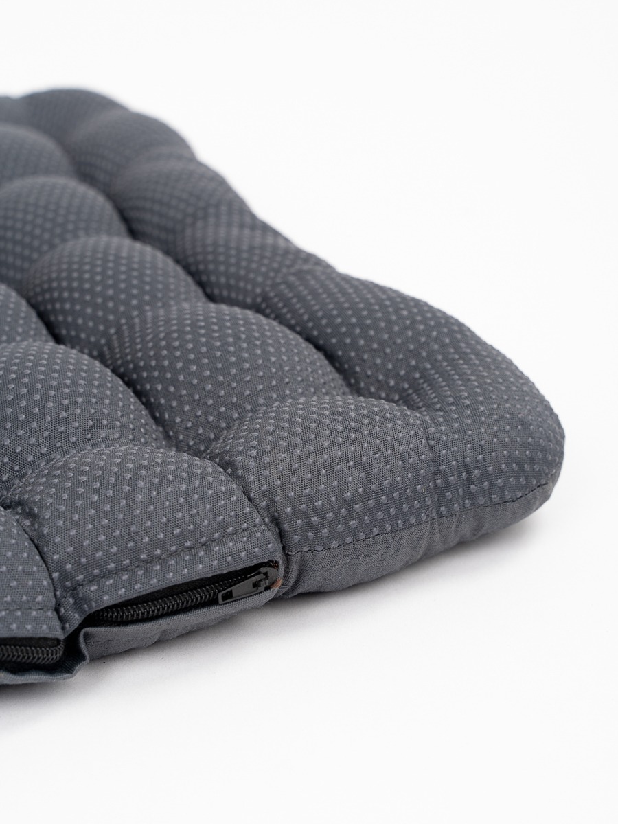 Сбоку твердая подушка для автокресла с гречкой 40 на 40 имеет замочек через который Вы можете отрегулировать плотность и высоту подушки, отсыпав нужное количество наполнителя. Ортопедическая накладка на стул или для автомобиля на сиденье внутри содержит лепестки из гречневой лузги, которые прекрасно пропускают воздух, обеспечивая циркуляцию воздуха. Поэтому наполнение из гречки не нагревается и сидеть на наших подушках в автомобиль комфортно даже в жаркую погоду. Эргономичная сидушка в машину окажет мягкий микромассаж на поверхность кожи автолюбителю, благодаря своему экологически чистому наполнителю.