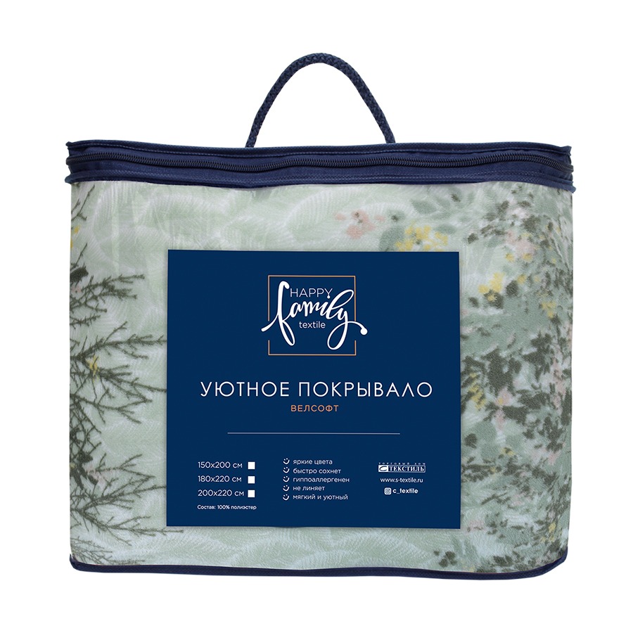 Покрывало Велсофт Happy Family - удобная и практичная вещь. Мягкое, приятное на ощупь, невесомое, его можно использовать в качестве пледа. Оно очень хорошо стирается и мгновенно высыхает, не теряя при этом ни формы, ни яркости расцветки. Достоинства: можно стирать в стиральной машине, не линяет.