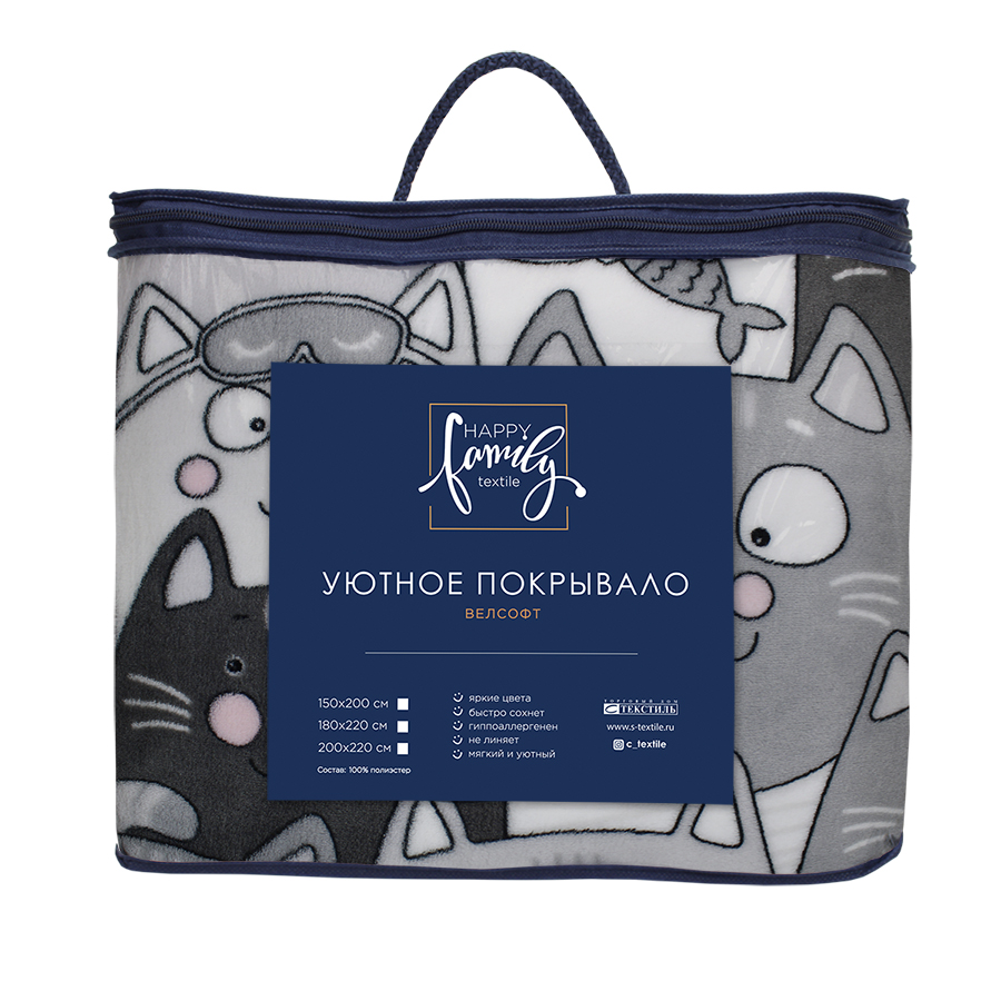 Покрывало Велсофт HAPPY FAMIIY- удобная и практичная вещь. Мягкое, приятное на ощупь, невесомое, его можно использовать в качестве пледа. Оно очень хорошо стирается и мгновенно высыхает, не теряя при этом ни формы, ни яркости расцветки. Достоинства: можно стирать в стиральной машине, не линяет.