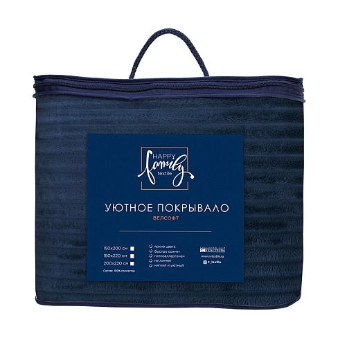 Покрывало Велсофт HAPPY FAMIIY- удобная и практичная вещь. Мягкое, приятное на ощупь, невесомое, его можно использовать в качестве пледа. Оно очень хорошо стирается и мгновенно высыхает, не теряя при этом ни формы, ни яркости расцветки. Достоинства: можно стирать в стиральной машине, не линяет.