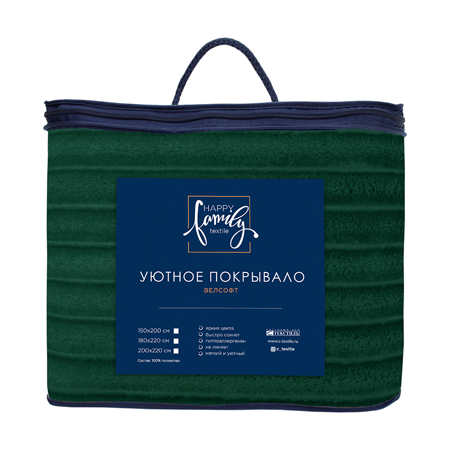 Покрывало Велсофт HAPPY FAMIIY- удобная и практичная вещь. Мягкое, приятное на ощупь, невесомое, его можно использовать в качестве пледа. Оно очень хорошо стирается и мгновенно высыхает, не теряя при этом ни формы, ни яркости расцветки. Достоинства: можно стирать в стиральной машине, не линяет.