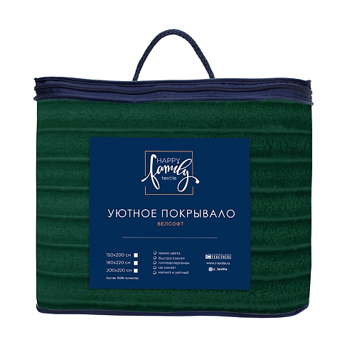 Покрывало Happy Family велсофт Волна г/к №94 изумрудный