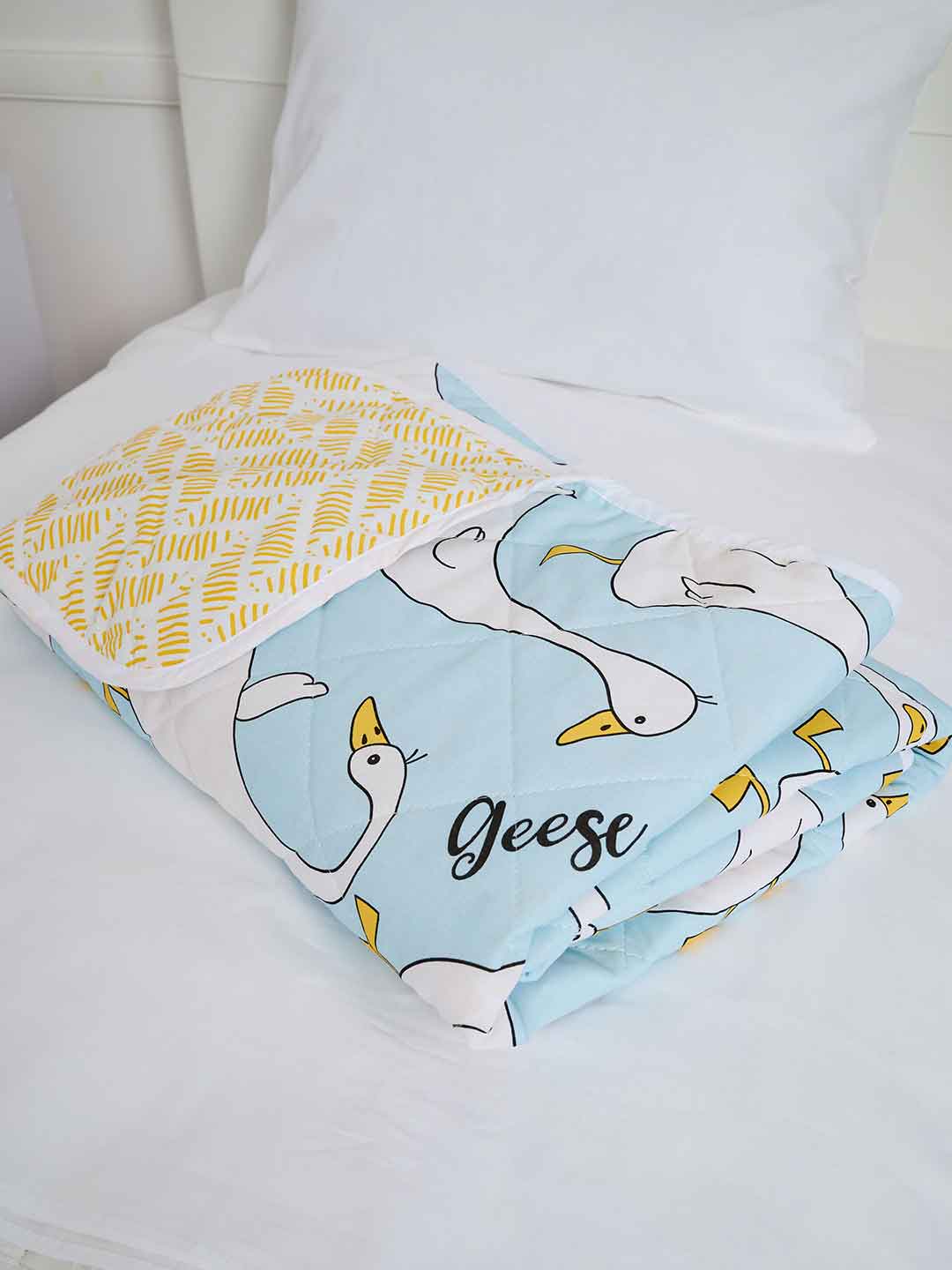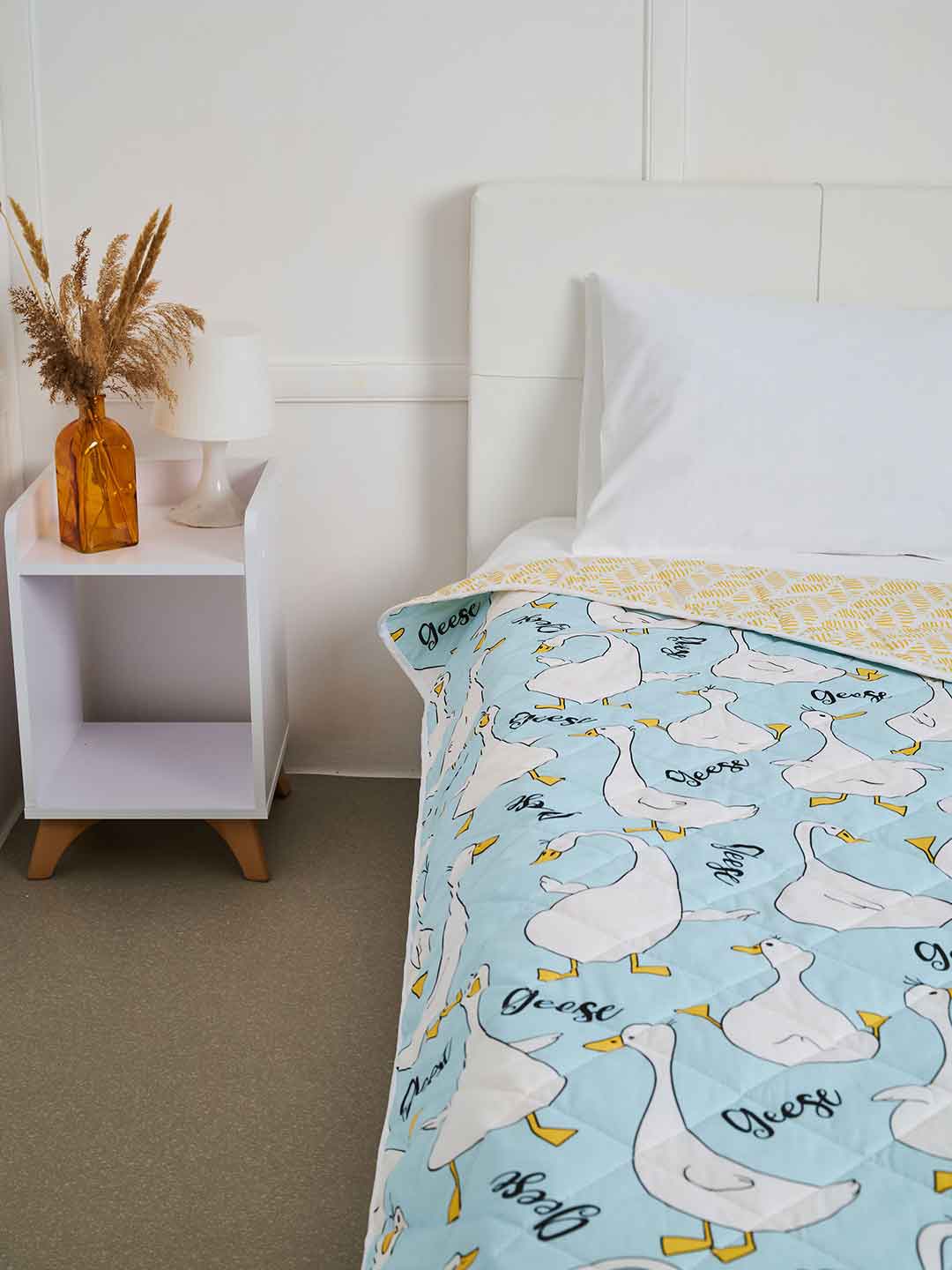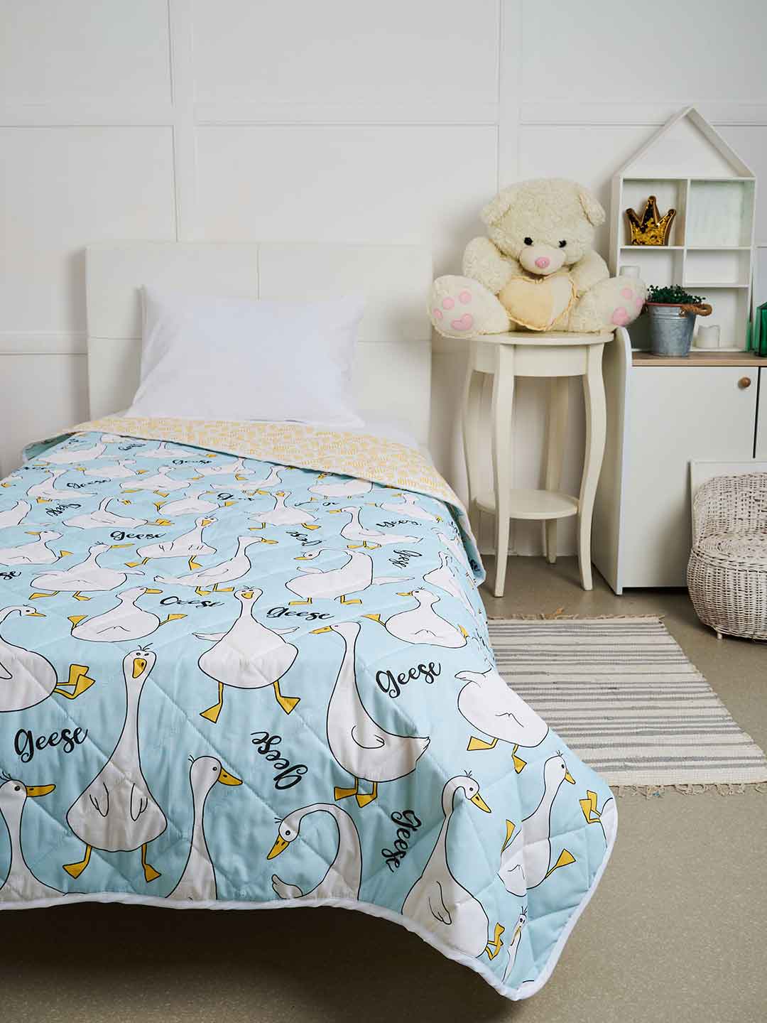 Покрывало стеганое детское поплин / Гусь-обнимусь (мята)