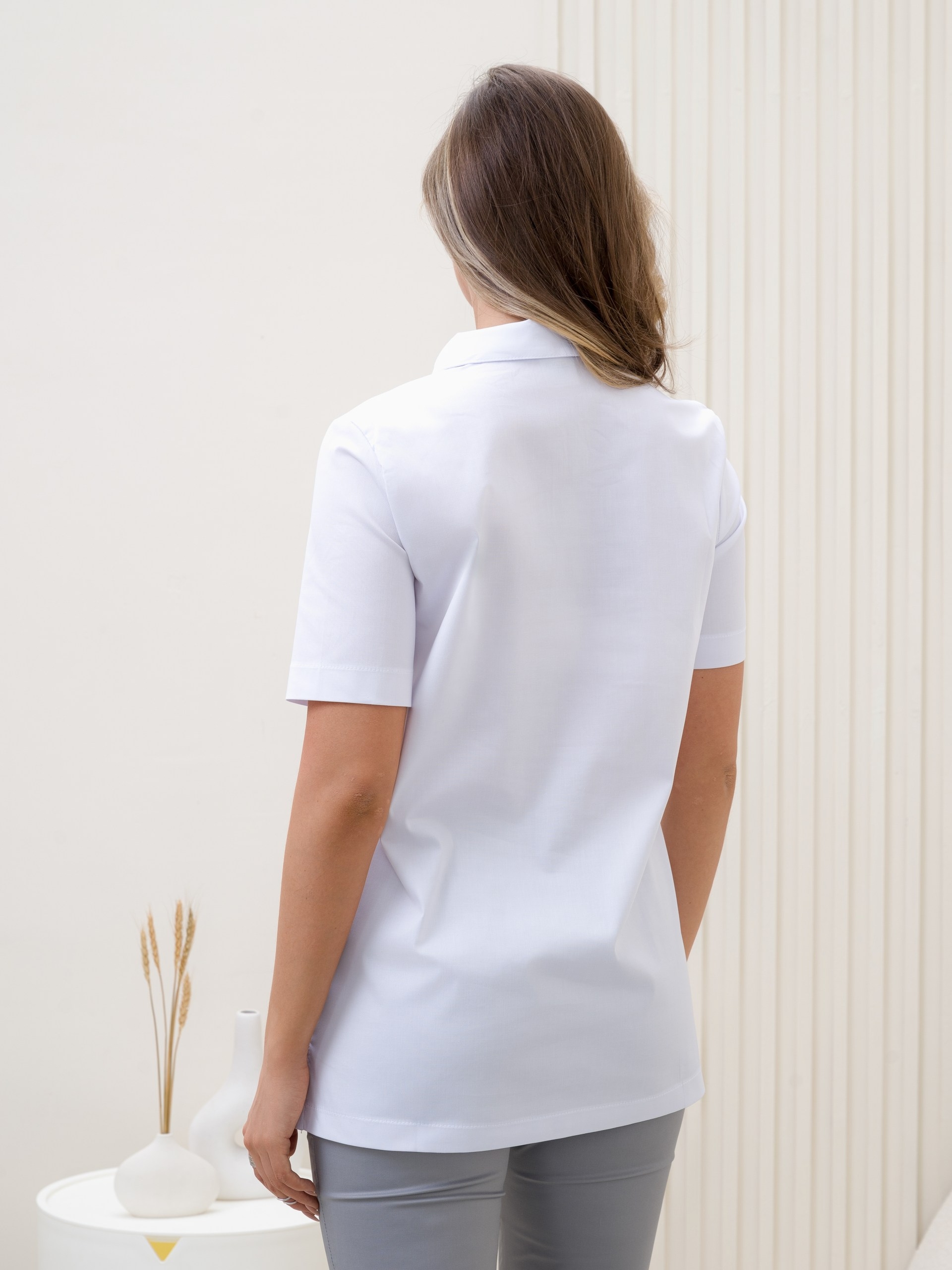 Поло медицинское женское. Теперь как элемент не только повседневного или спортивного стиля, но и широко используется в спецодежде. Короткие рукава добавляют образу изящность и женственность, аккуратный воротник переходит в удобную застежку на кнопках. Ткань хорошо выдерживает многократные стирки. Размеры с 40 по 60.