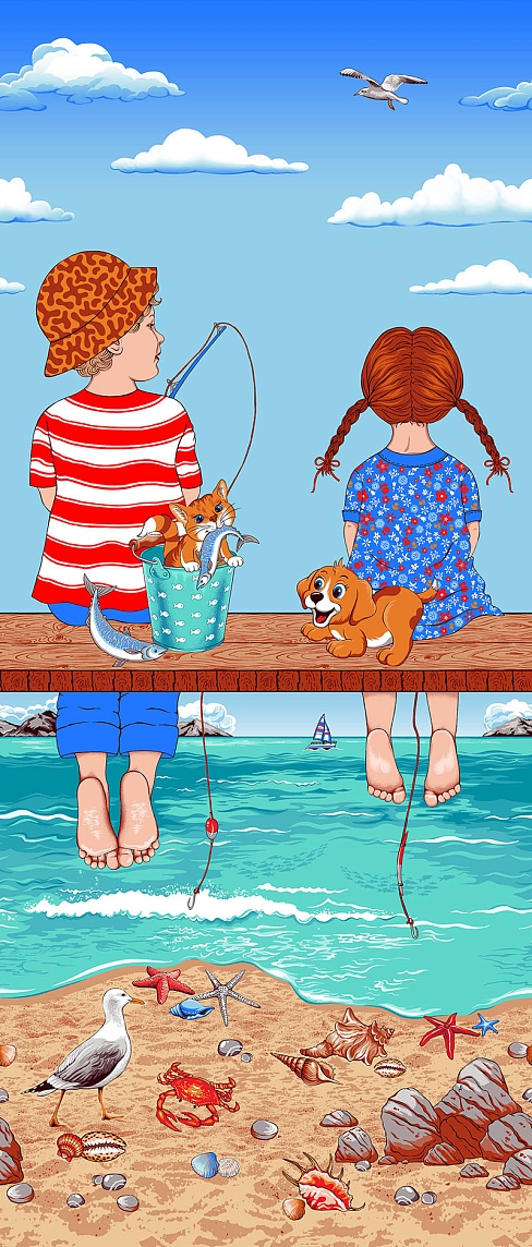 Полотенце банное вафельное №307 / Рыбалка