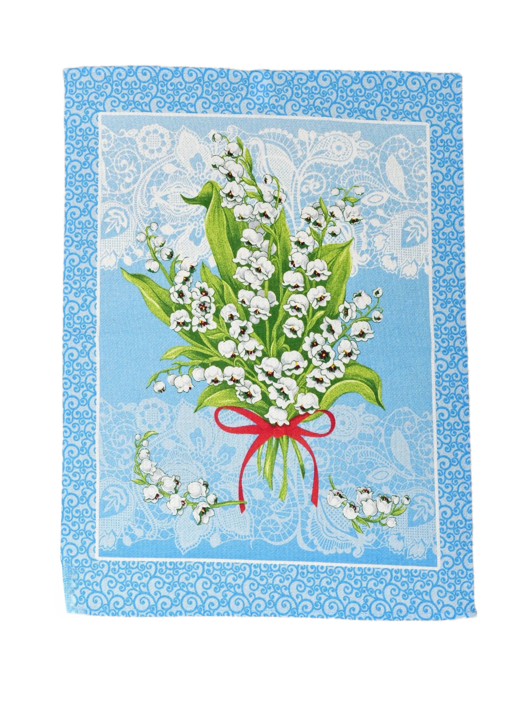 Полотенце кухонное из хлопкового полотна рогожка с рисунком купон.