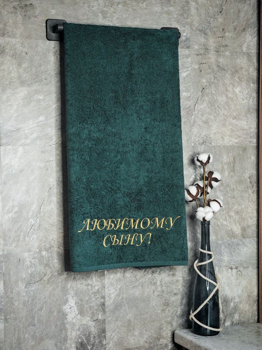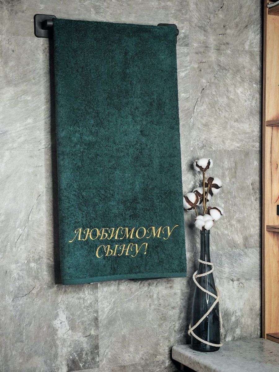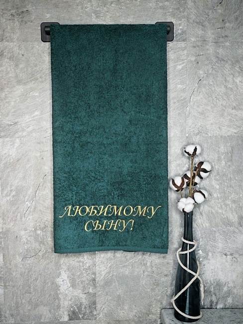 Полотенце махровое с вышивкой "Любимый сын" / малахит