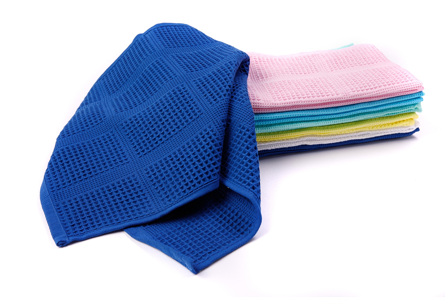Вафельные гладкокрашеные полотенца производства Узбекистана — это изделия из 100% хлопка с характерной объёмной текстурой, которая обеспечивает хорошую впитываемость влаги. Они подходят для использования в ванной, на кухне, в бассейне или на пляже.