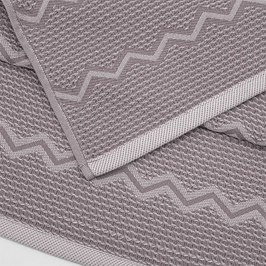 Полотенца Зигзаг произведены в Узбекистане из 100% хлопка. Это пестротканые жаккардовые вафельные полотенца, плотность 350г/м2. Полотенца отлично впитывают влагу, отлично подходят для использования в ванной комнате или в бассейне (размеры 70*140см и 50*90см), или на кухне (размер 40*60см, с петелькой).