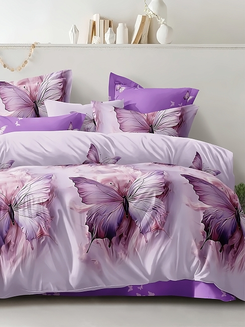 Комплекты постельного белья из поплина отшиваются с наволочками в количестве 2 штук, имеют застежку - молния на пододеяльнике и наволочках, упаковываются в прозрачный пакет ПВХ и комплектуются картонным вкладышем с ярким печатным изображением.