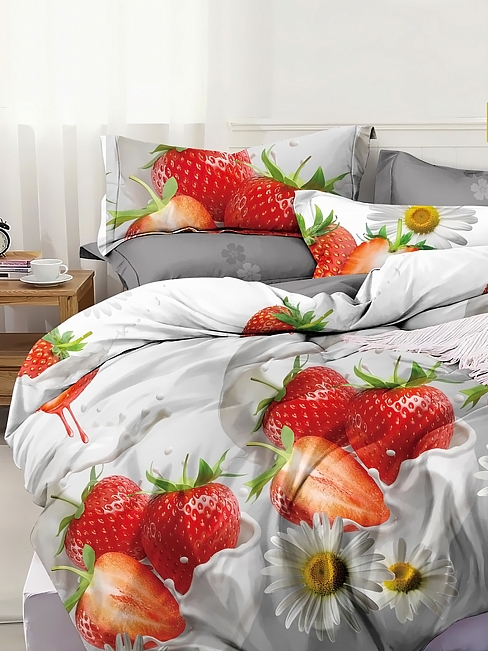 Постельное белье поплин Эксклюзив (молния) / Клубничка