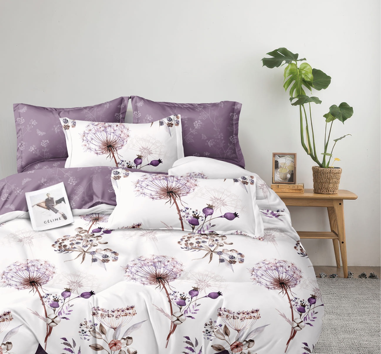 Комплекты постельного белья из поплина отшиваются с наволочками в количестве 2 штук, имеют застежку - молния на пододеяльнике и наволочках, упаковываются в прозрачный пакет ПВХ и комплектуются картонным вкладышем с ярким печатным изображением.