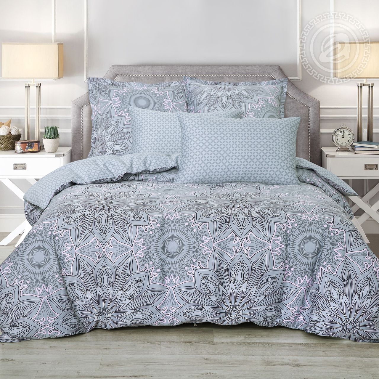 «Династия» – элитное постельное белье из сатина с королевским шиком. Композиция отличается утонченностью и изяществом. Она представляет собой гармоничное сочетание цветочного орнамента и пастельных оттенков. Изящный принт украсит спальню и подарит чувство отдыха и красоты.