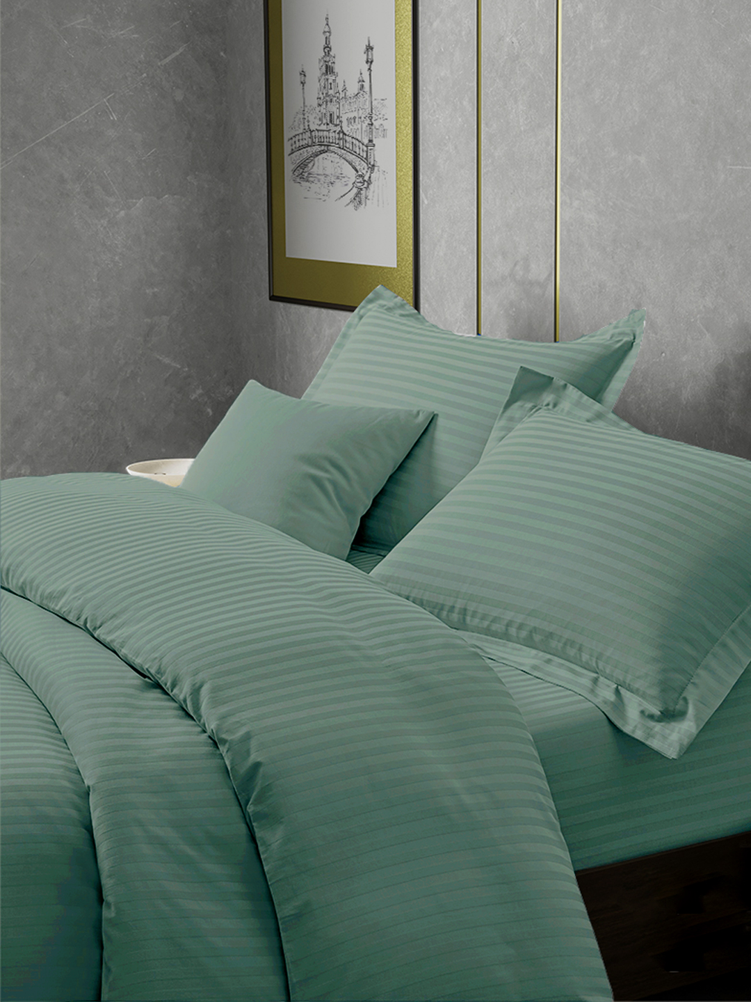 Постельное белье сатин страйп с простыней на резинке (ПУ) / Аквамарин