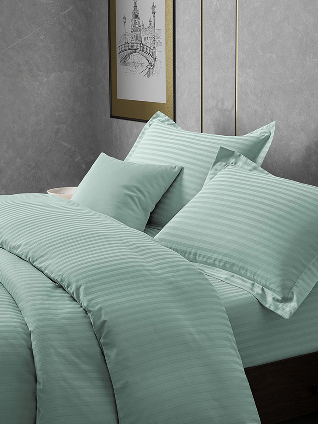 Постельное белье сатин страйп с простыней на резинке (ПУ) / Нежная мята