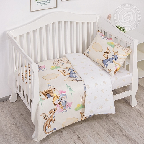 «Воздушный замок» – комплект постельного белья из поплина для юных рыцарей и принцесс. На ткани чудесный и очаровательный рисунок с волшебными героями.