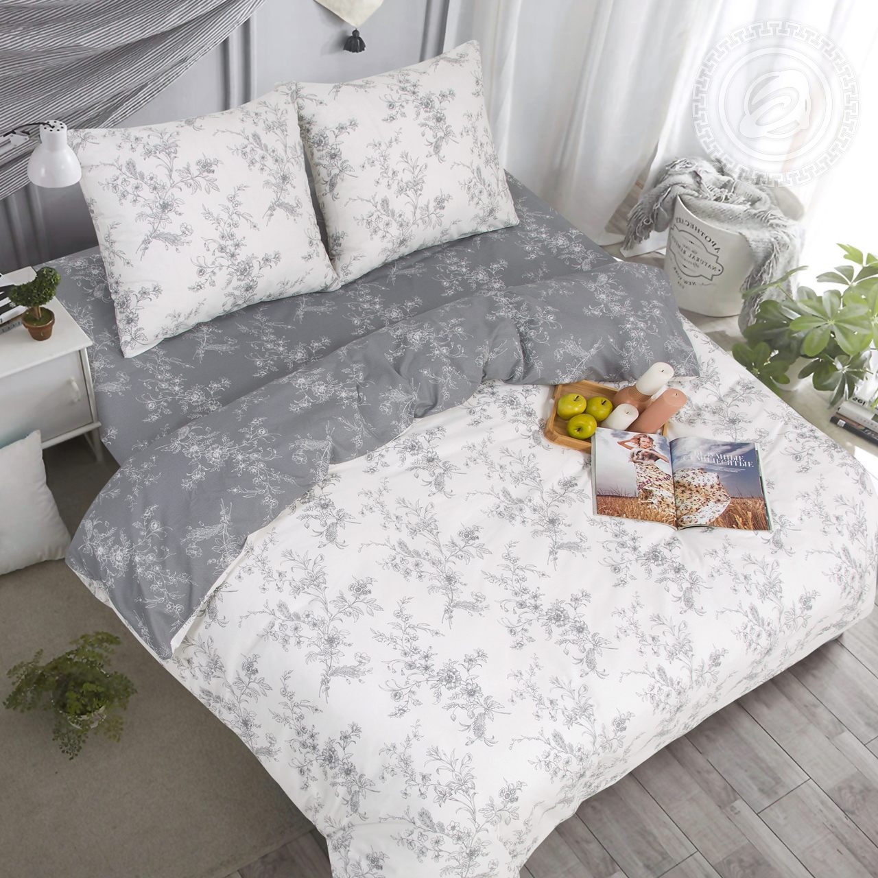 Постельное белье из натурального хлопка «Луара» станет чудесным дополнением спальни в стиле «прованс». Легкий и изящный цветочный принт выполнен в графике – черно-белой гамме с выразительной прорисовкой мельчайших деталей. На светлом фоне композиция с душистыми весенними букетами, напоминающими эскиз.