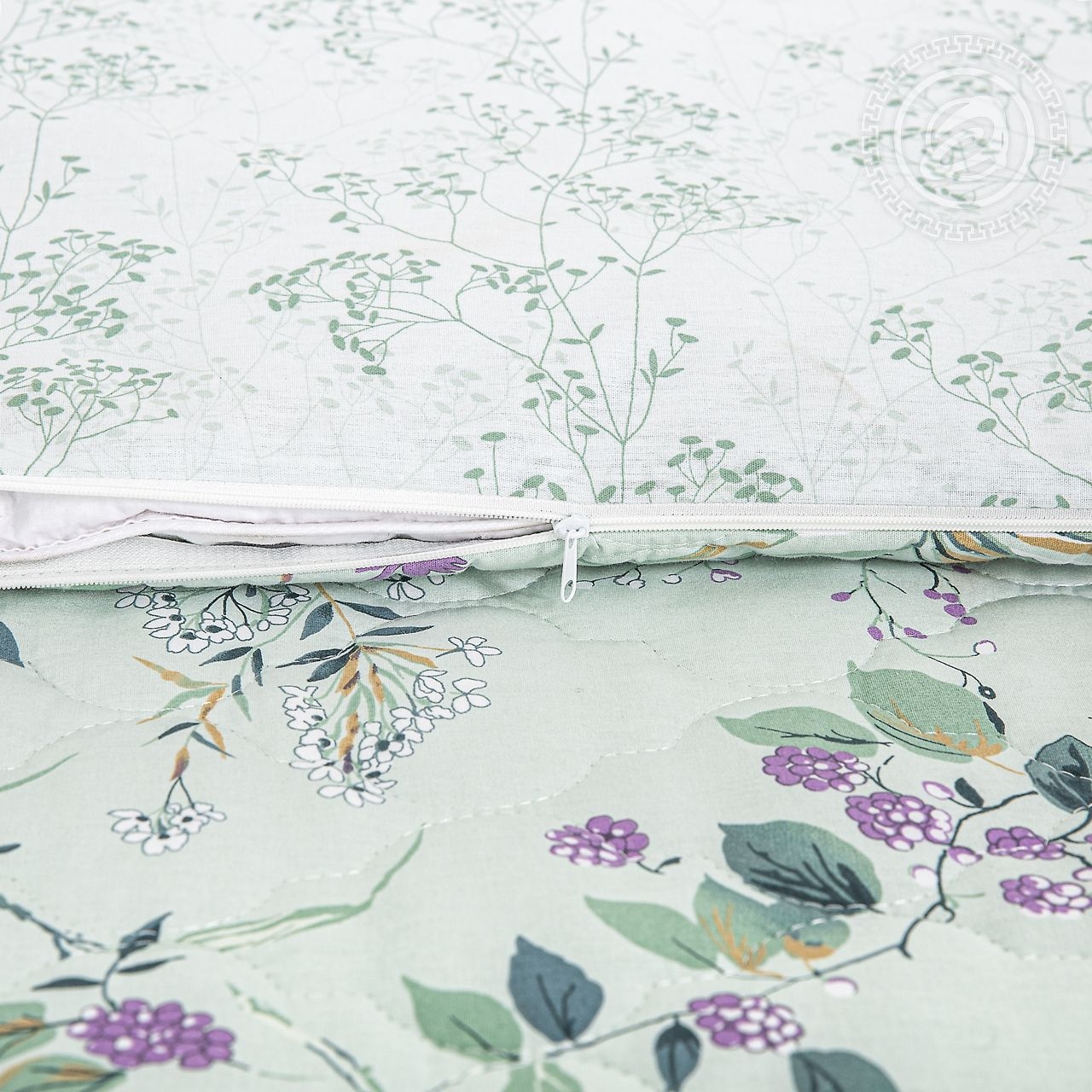 Отличительная особенность комплекта зима-лето - это стеганый утепленный пододеяльник. Пододеяльник подшит с одной стороны изнутри тонким слоем синтепона. Утеплитель закрыт дополнительным слоем поплина, что придает изделию эстетичность и изящество.