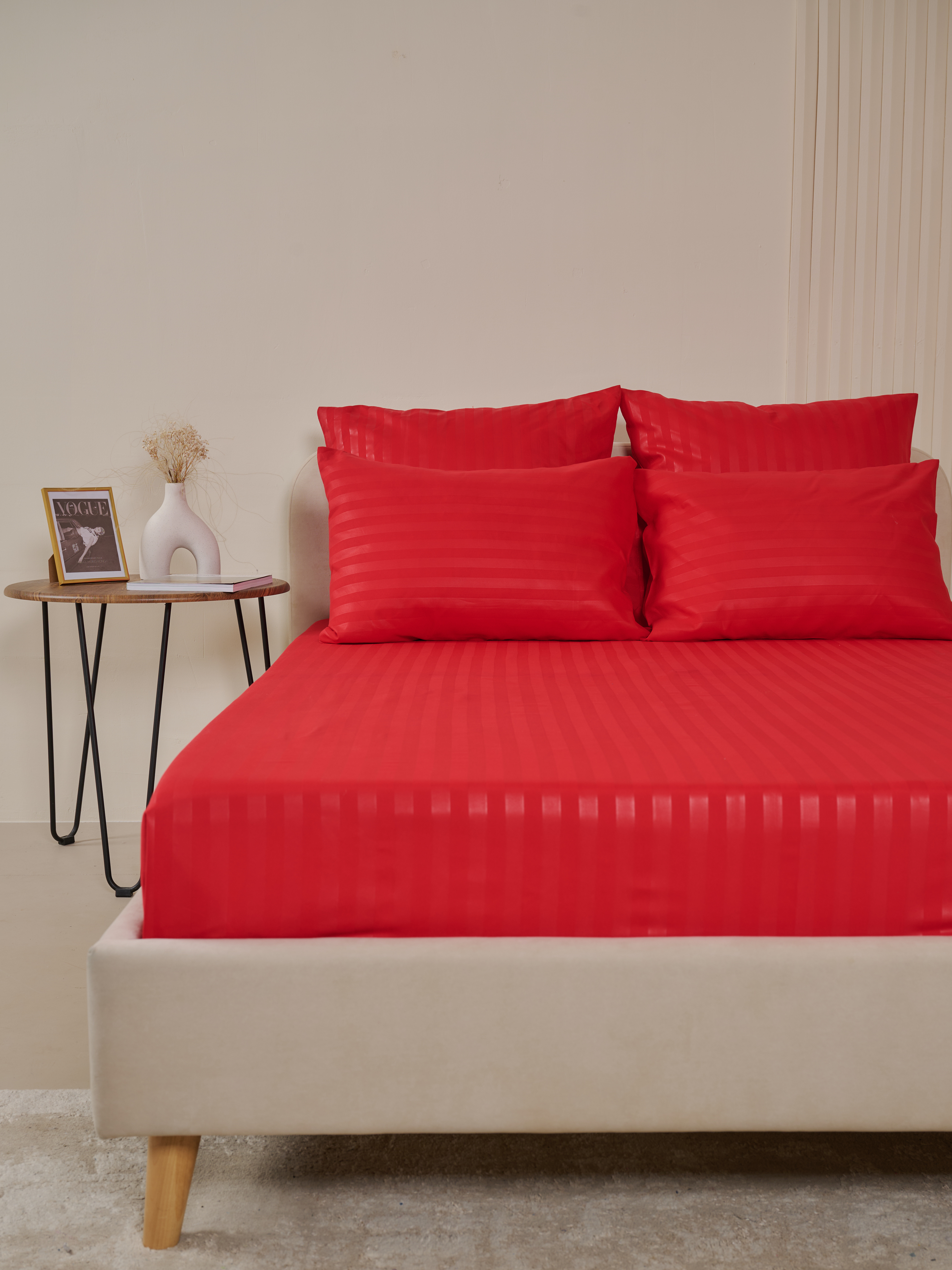 Простыня микрофибра-страйп на резинке / Красный