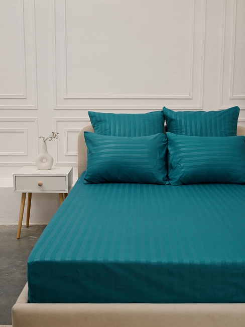 Простыня на резинке из микрофибры-страйп — это изделие с резинкой по периметру, которое надёжно фиксируется на матрасе и не смещается во время сна. Страйп — это ткань с полосами, которые могут быть расположены вертикально или горизонтально.