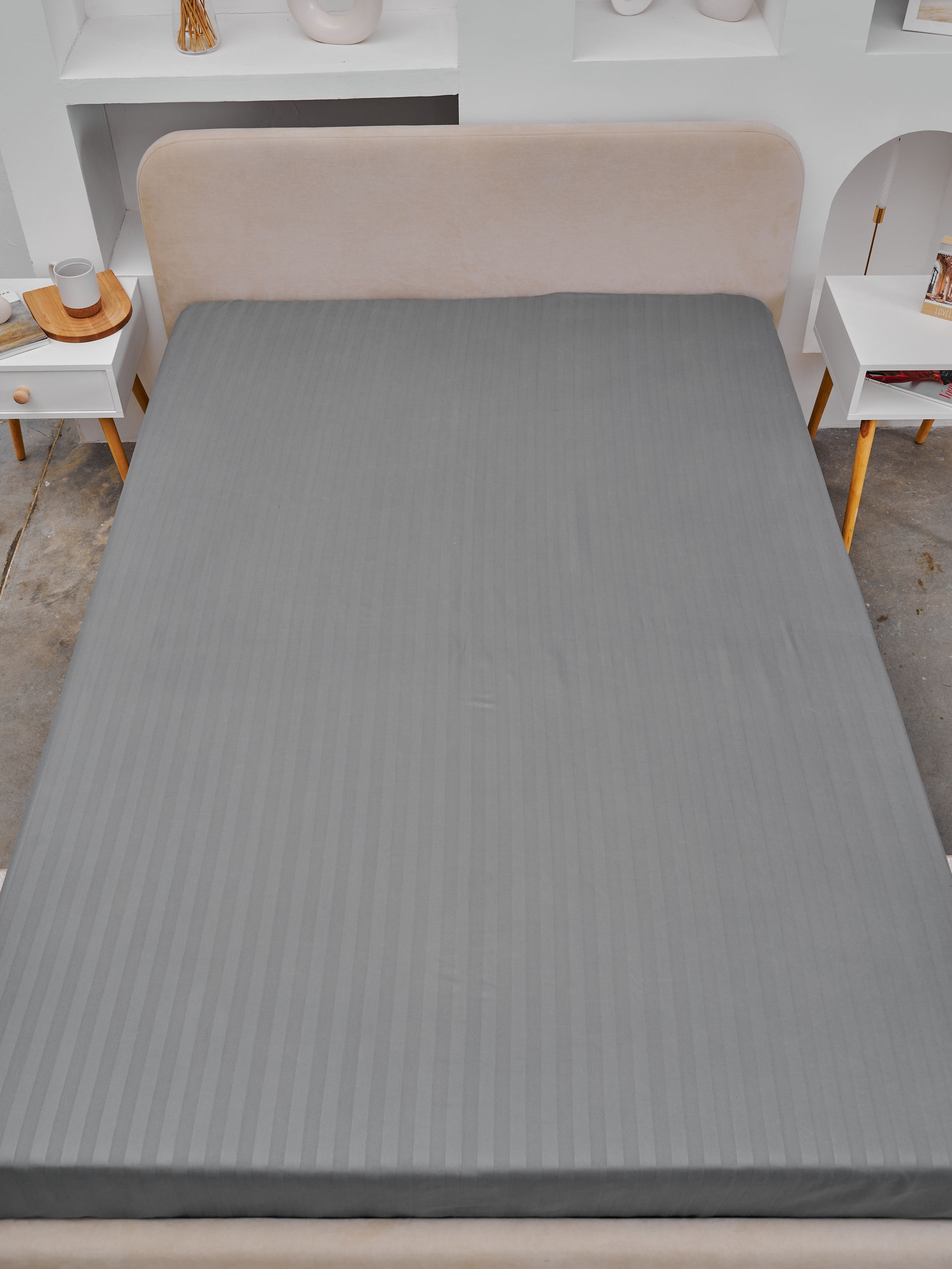 Простыня микрофибра-страйп на резинке / Светло-серый