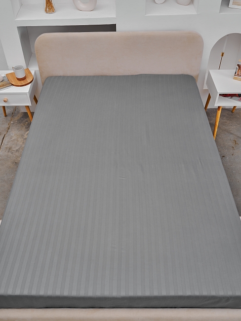 Простыня на резинке из микрофибры-страйп — это изделие с резинкой по периметру, которое надёжно фиксируется на матрасе и не смещается во время сна. Страйп — это ткань с полосами, которые могут быть расположены вертикально или горизонтально.