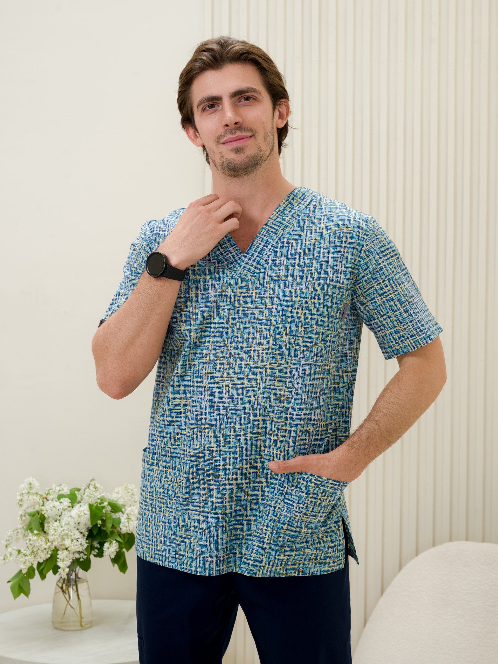 Рубашка медицинская мужская М-286-13367 Поплин