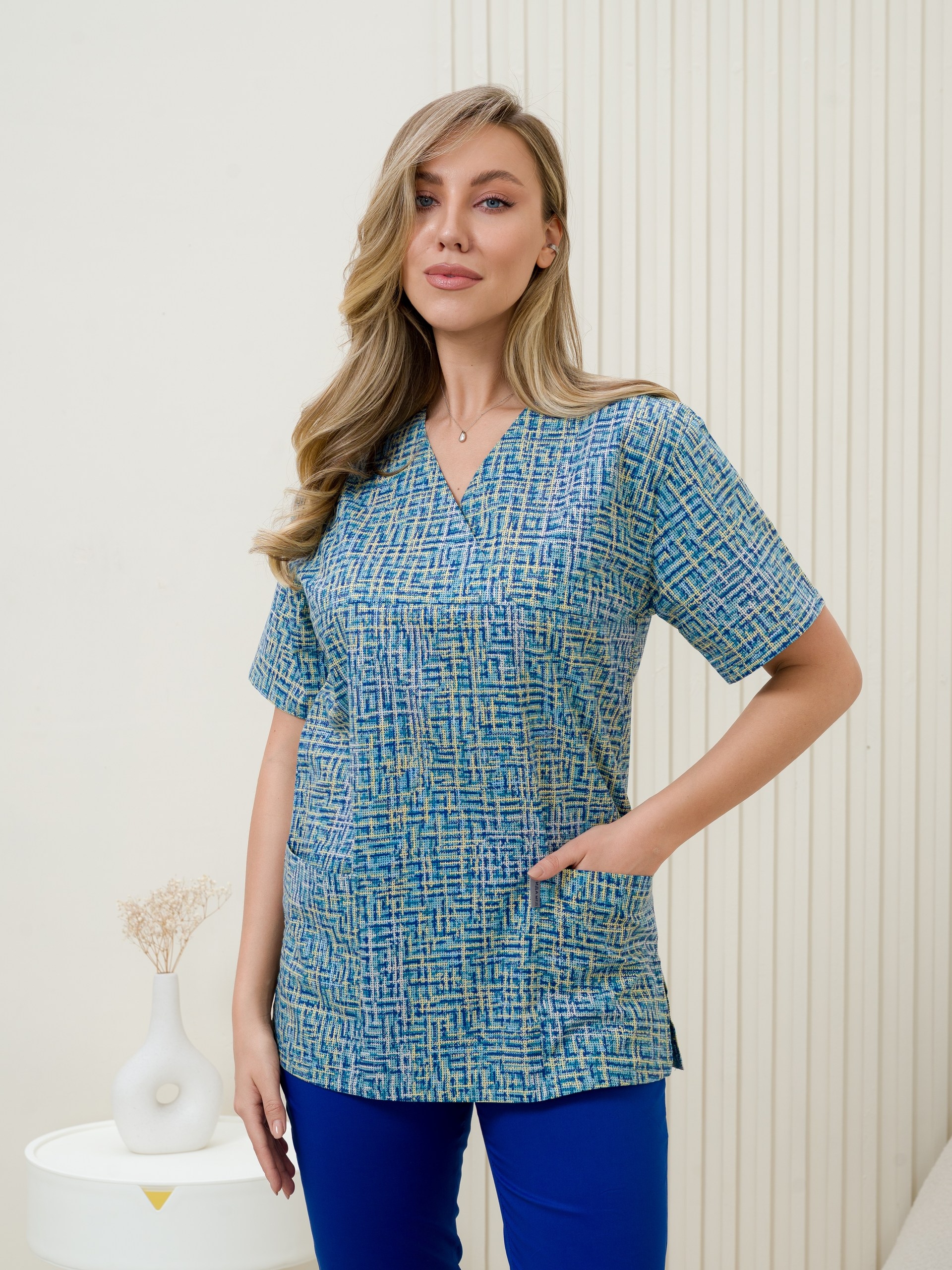 Женская медицинская рубашка из поплина — это практичная и удобная модель, которая подходит для медицинского персонала, косметологов, мастеров маникюра и других специалистов. Поплин — гладкая и прочная ткань, которая изготавливается из хлопка, шёлка или синтетических волокон. Она отличается износостойкостью, воздухопроницаемостью и лёгкостью.