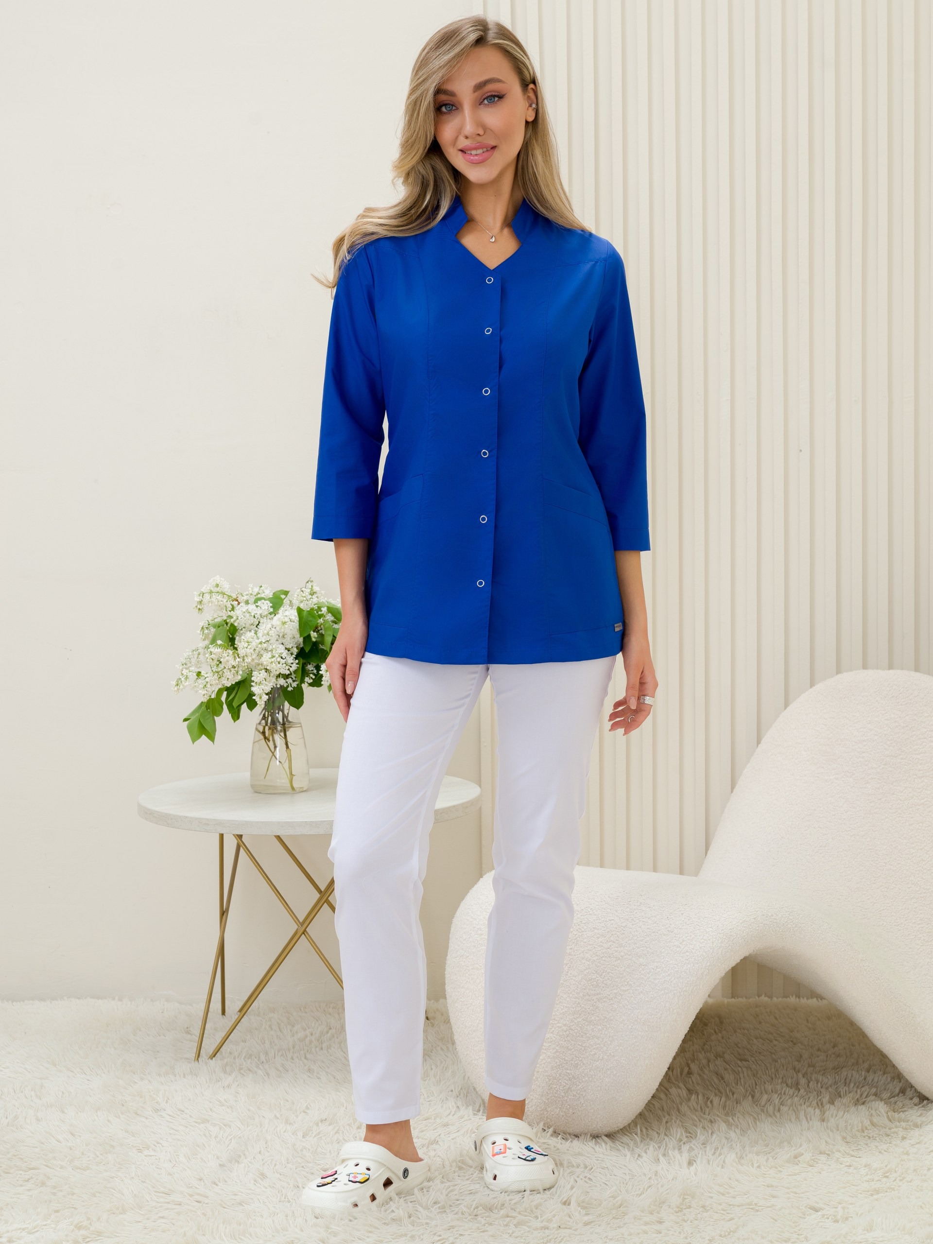 Медицинский жакет из ткани ТиСи — это спецодежда для медработников, сочетающая прочность, комфорт и практичность. ТиСи — смесовая ткань, в составе которой 65% полиэстера и 35% хлопка. Такой состав обеспечивает износостойкость, воздухопроницаемость и простоту ухода.