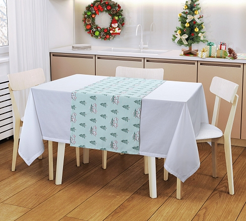 Кухонная скатерть-дорожка из рогожки — практичный и декоративный элемент интерьера. Она изготавливается из прочного материала с характерной рельефной фактурой, который ценится за натуральность, универсальность и неприхотливость в уходе. Рогожка устойчива к многочисленным стиркам и придаёт столу праздничный вид.
