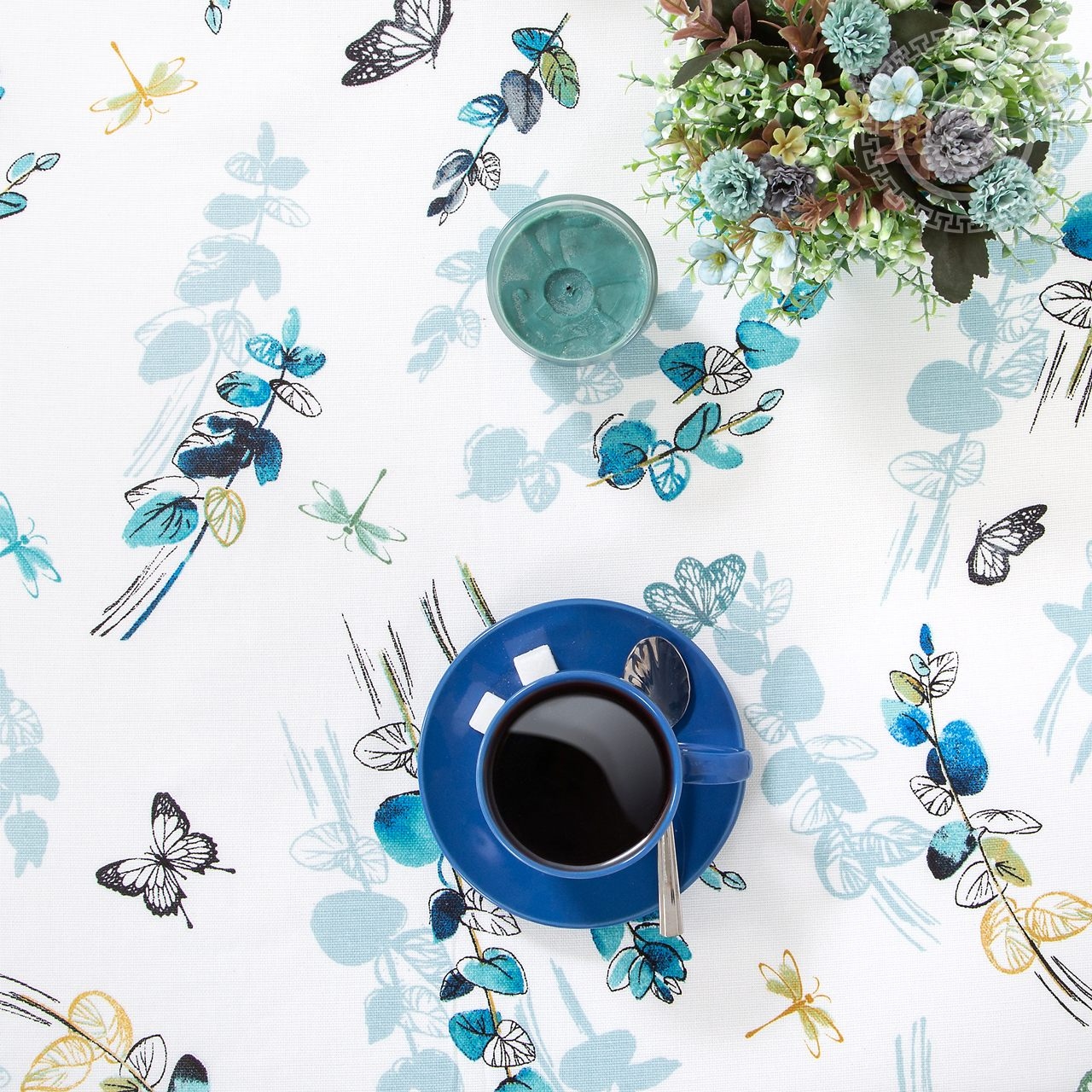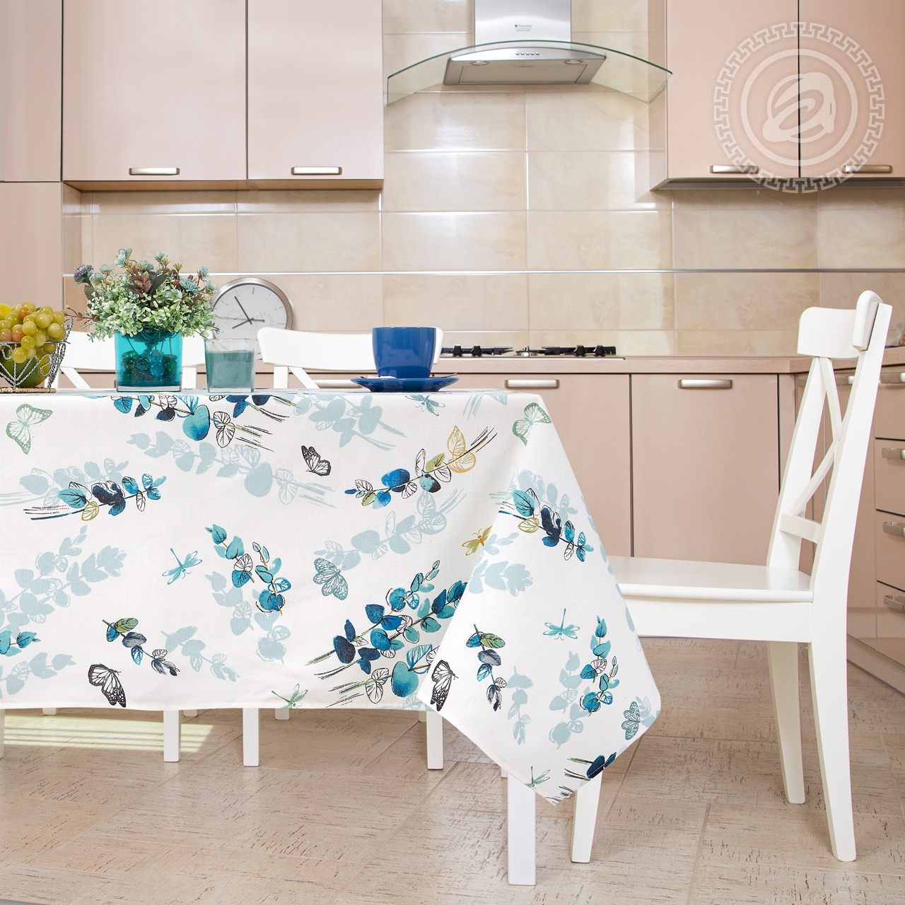 Такой нежный акварельный рисунок «Мирт»! Этот свежий весенний дизайн выполнен на ткани-рогожке. Изделия для кухни из рогожки долговечны и надежны, практичны, хорошо переносят множество стирок и продолжают служить хозяйке верой и правдой. Для единства стиля на кухне можно сочетать скатерть и полотенца из рогожки нового дизайна «Мирт» - приносящего тишину, спокойствие и расслабление. Акварельные бледно-голубые росчерки стеблей мирта сочетаются с шорохом крыльев бабочек и шуршанием стрекоз – непреодолимое впечатление знойного дня и дуновения ароматных трав.